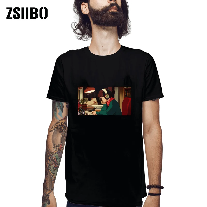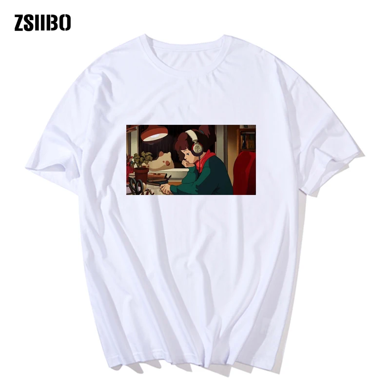Футболка женская с принтом японского аниме, топ в стиле хип-хоп с круглым вырезом и внимательным прослушиванием музыки и классического ритма для расслабления