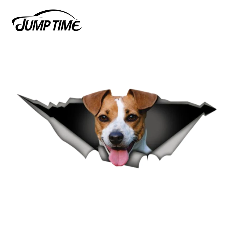 Время прыжка 13 см x 4,8 см Джек Рассел терьер Автомобильная Наклейка 3D животное графическая виниловая наклейка на окно автомобиля ноутбука бампер автомобильные наклейки с животными наклейка s