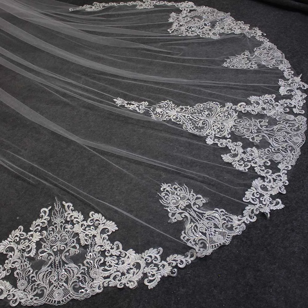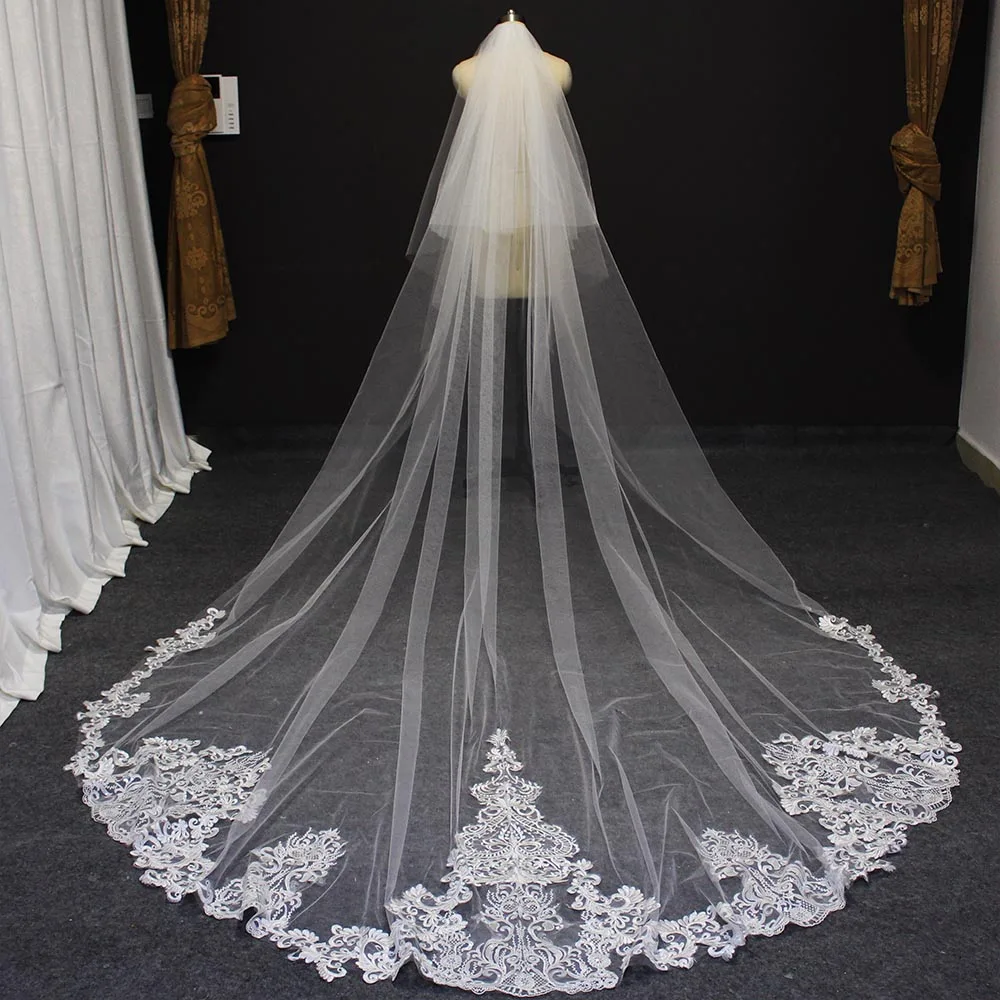 Высококачественная Изящная кружевная фата длиной 4 метров, Свадебна...