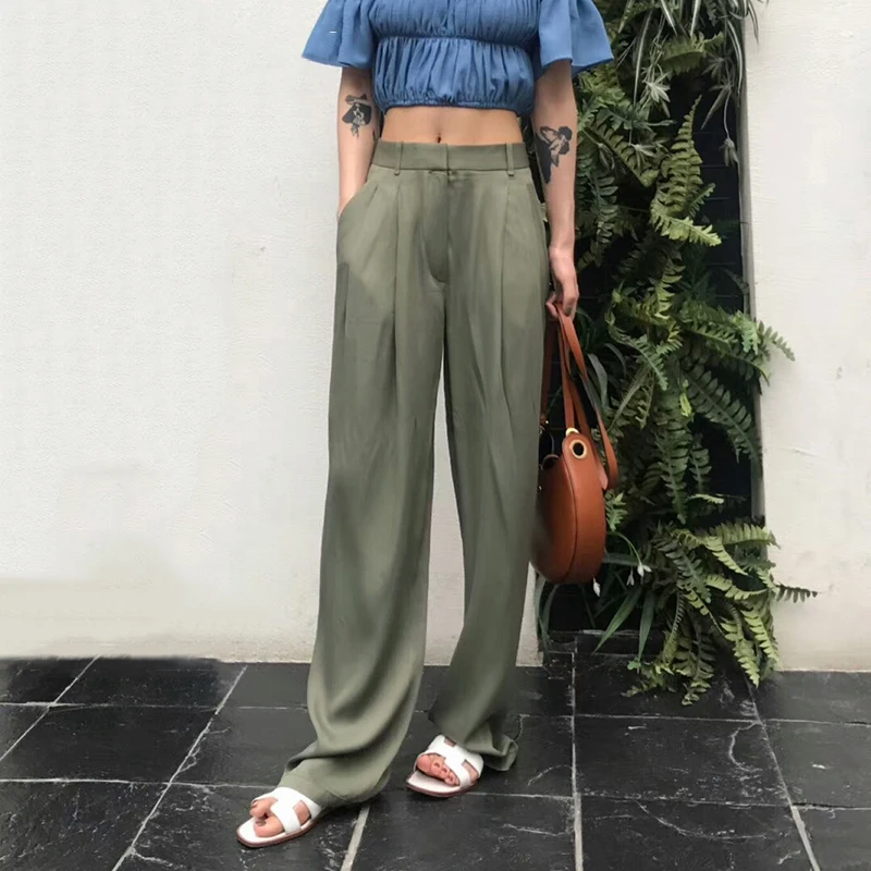 Женские длинные брюки с высокой талией VGH, черные свободные брюки большого размера с карманами на молнии, весна 2022