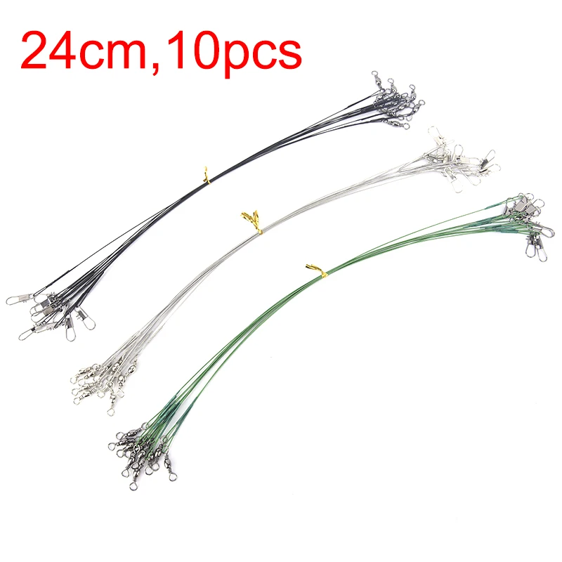 10 шт.лот 24 см стальная проволока лидер с вертлюжная Рыбалка аксессуар 3 цвета привести core поводок Рыбалка линии