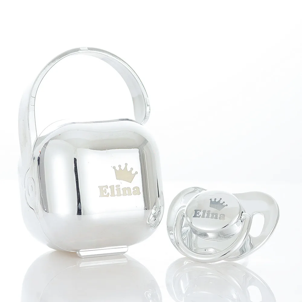 Индивидуальная индивидуальная Роскошная детская соска миокар с любым именем без бисфенола А черного и белого цвета и коробка для хранения соски и соски