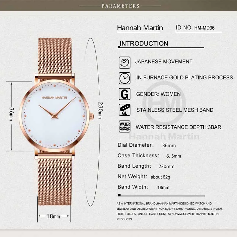 Часы Hannah Martin женские кварцевые в деловом стиле, модные брендовые роскошные, водонепроницаемые, подарок для женщин