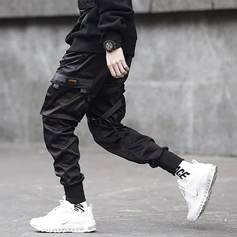 Шаровары мужские с лентами, Джоггеры в стиле хип-хоп, брюки-карго н...