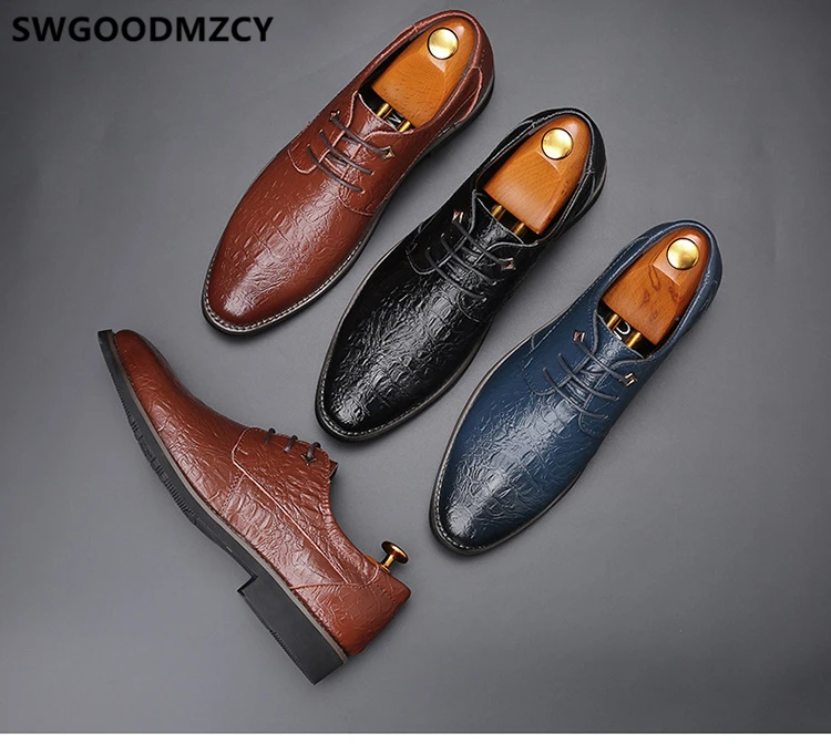 Мужская обувь в деловом стиле; Обувь из натуральной кожи коричневого цвета; Платье; Туфли с крокодиловым принтом; Черные мужские итальянские ботинки туфли-оксфорды синего цвета без застежки; Chaussures Hommes En Cuir; Luxe