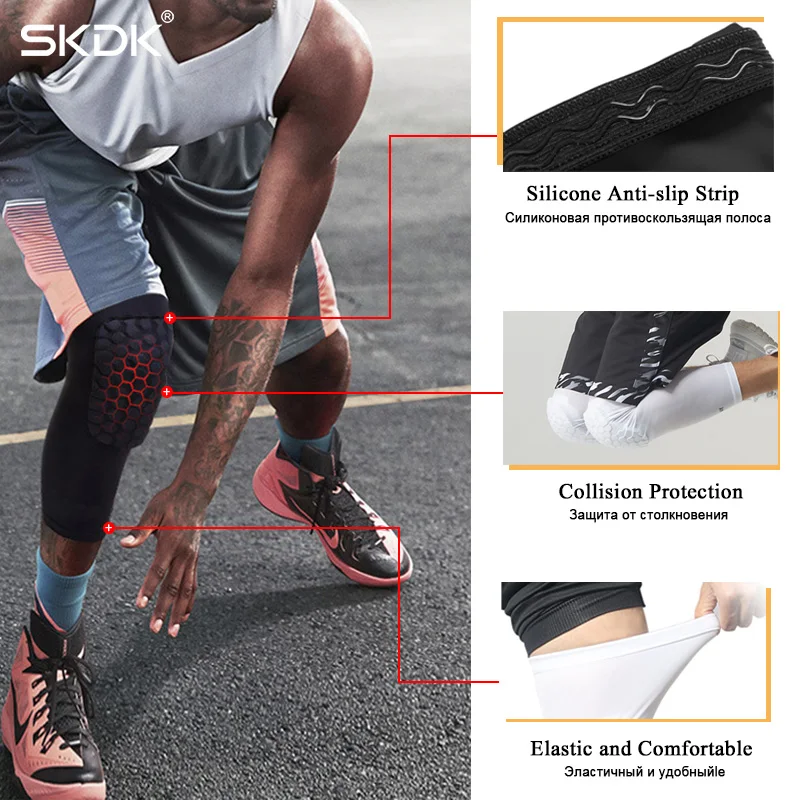 Эластичный баскетбольный наколенник SKDK, 1 шт., сотовый противоударный наколенник с длинными рукавами, наколенник, поддержка волейбола, футбола, наколенник