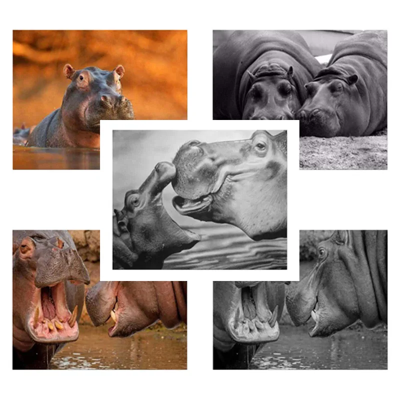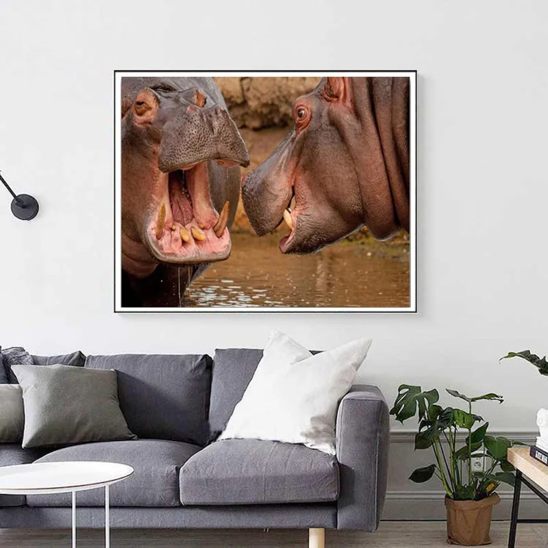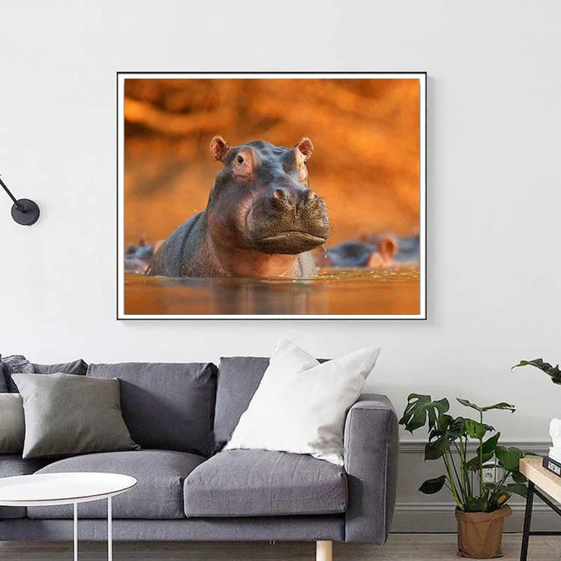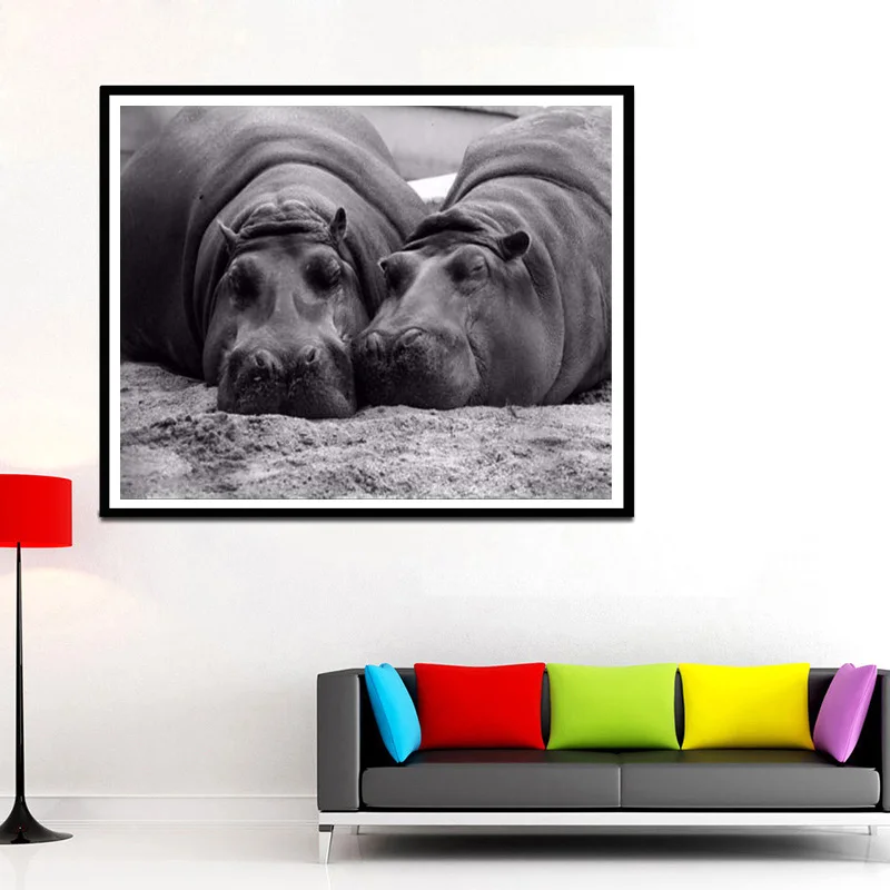 Набор для алмазной вышивки бегемот, мозаика сделай сам из черных и белых страз, полная выкладка, Круглая Мозаика, домашнее животное, вышивка крестиком, Декор