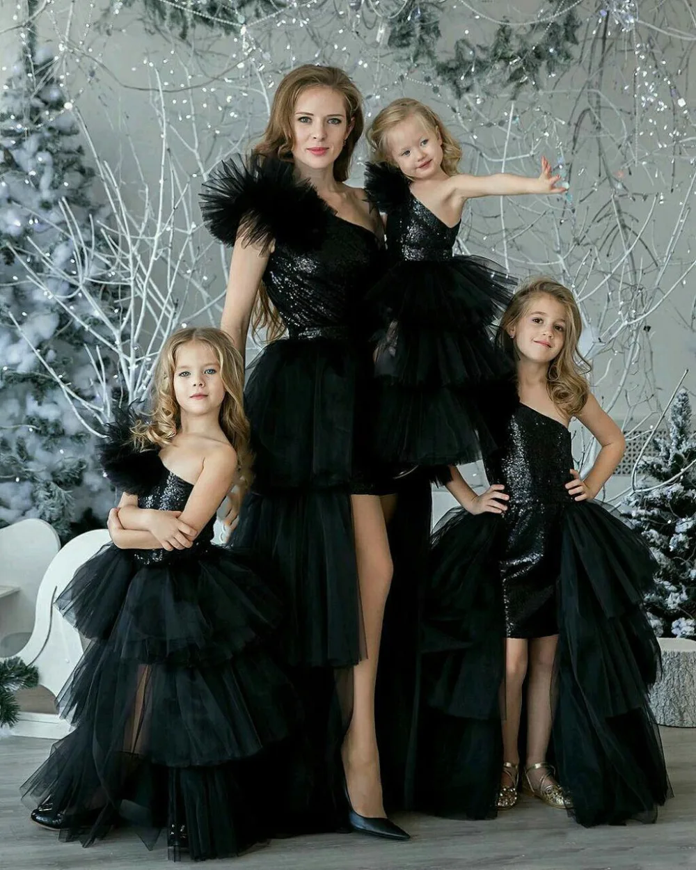 Красивое черное платье для девочек с высоким и низким цветочным принтом, платье на одно плечо с блестками, пышные платья для девочек с оборками, вечернее платье-пачка, 2020