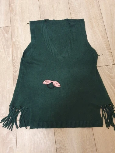 Очень милый жилет. Соответствует описанию. с продавцом не общалась. Покупкой довольна, рекомендую.