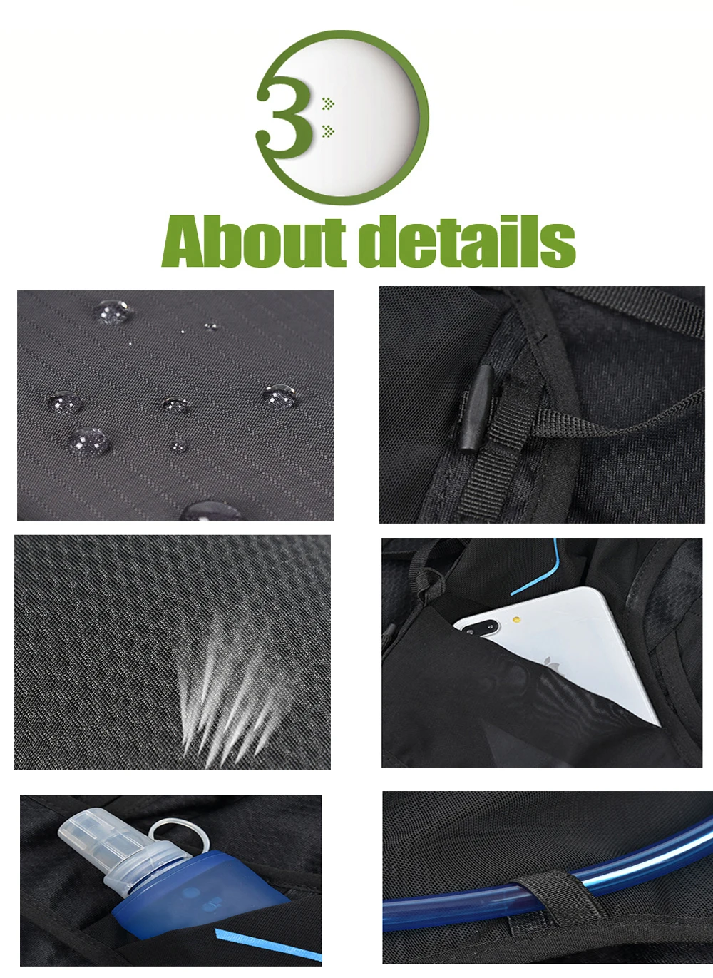 Рюкзак NEWBOLER Hydration изготовлен из высококачественной сетчатой нейлоновой ткани, прочный и легкий. Эргономичный дизайн с мягкой спинкой обеспечивает превосходный опыт, комфорт и воздухопроницаемость.