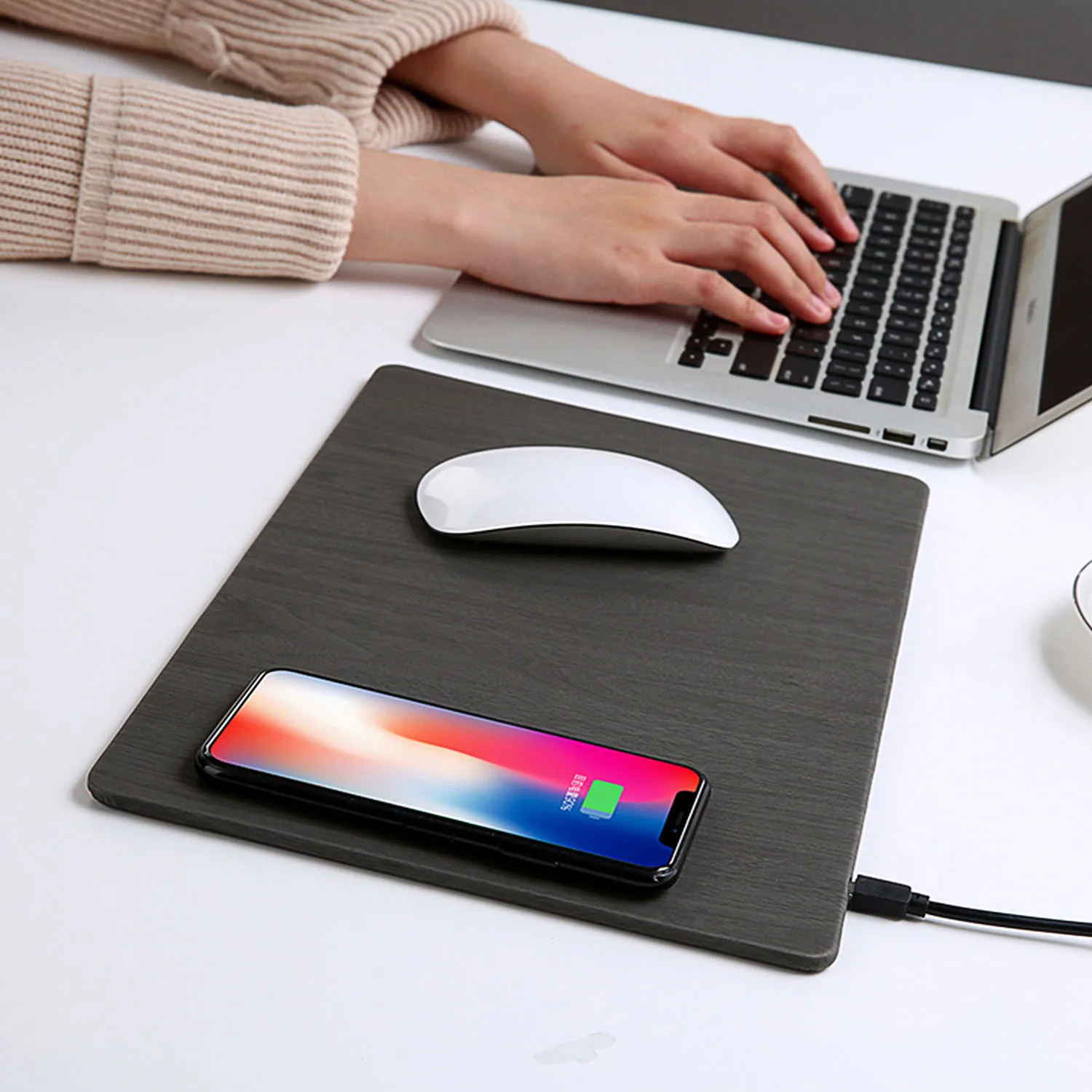 2 в 1 дизайн, комбинированный коврик для мыши и беспроводная зарядная станция QI в одном, обеспечивает больше удобства для вас.