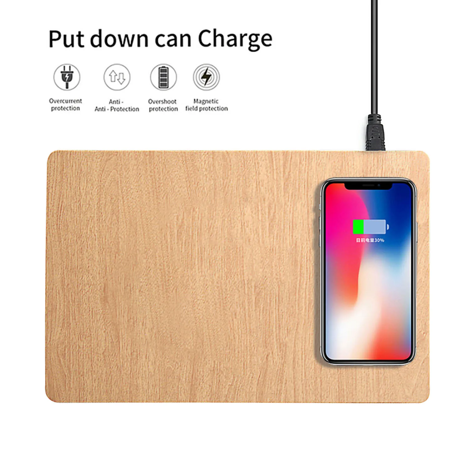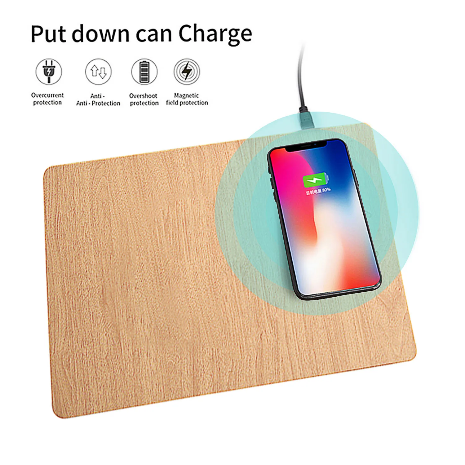 Просто поместите телефон прямо на коврик, и он начнет зарядку, не нужно вставлять телефон в настенное зарядное устройство или порт USB.