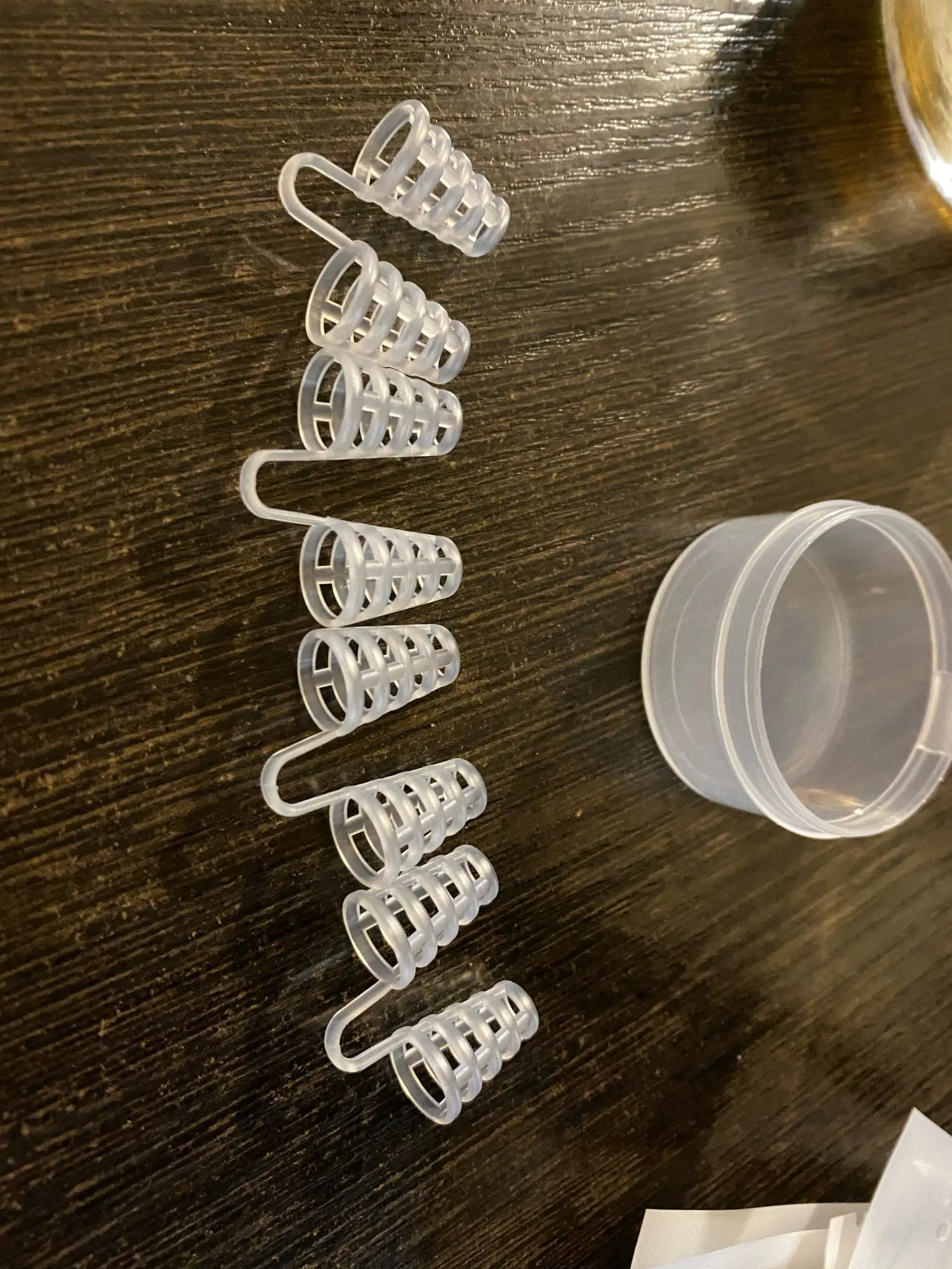 На фото это сетки, но на самом деле это трубочки из силикона. Трубочки длинные, пришлось укоротить до своего размера носа. Теперь по поводу размера. Для мужика нужен размер M или L. Мне подходит и то, и то, только L чуть больше, чем нужно, а M прилично меньше,чем нужно. Для женщин подойдёт M или S (если женщина с миниатюрным носиком). S для детей, наверное от 8 лет. Есть 2 вида храпа ( мне "повезло" иметь оба), от искривлённой перегородки и от проседающего нёба (где маленький язычок). Так вот от храпа от искривлённой перегородки носа помогает отлично!