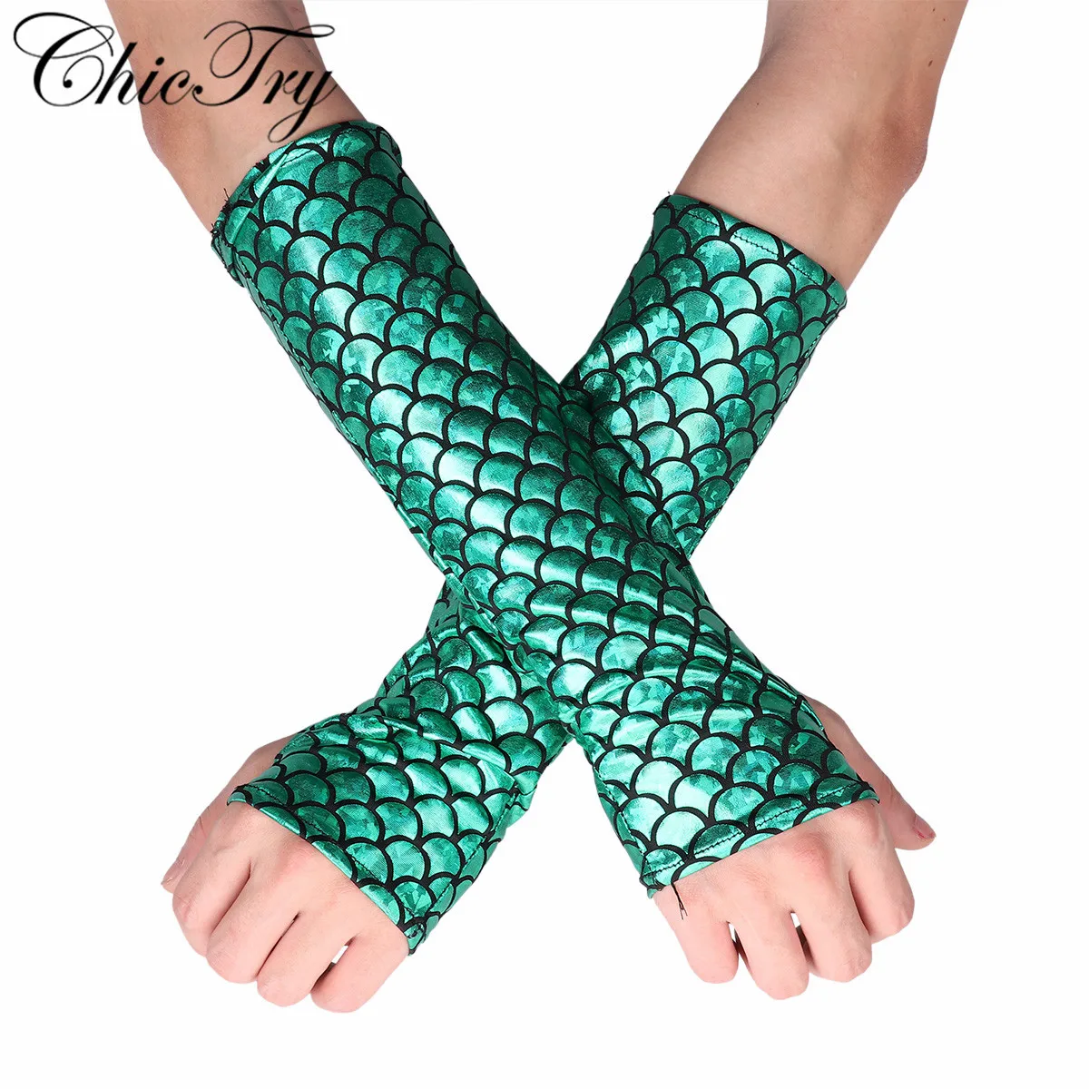 Женские перчатки без пальцев с рыбьей чешуей русалки, длинные рукава, для Хэллоуина