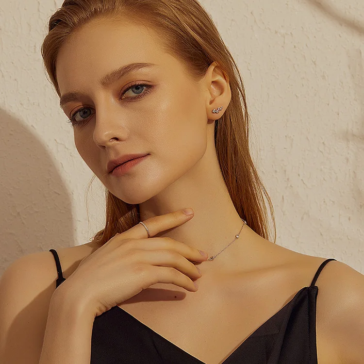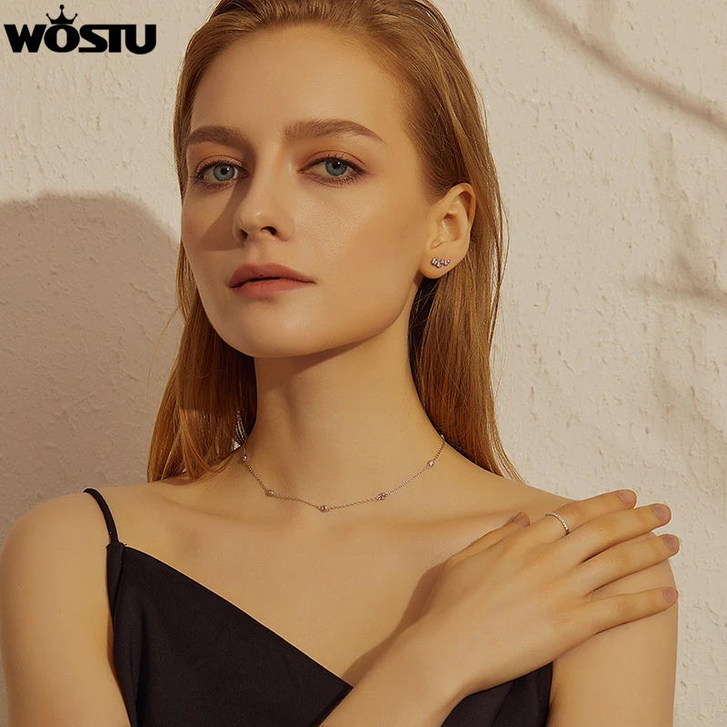 Женское длинное ожерелье из серебра 925 пробы с ярким цирконием