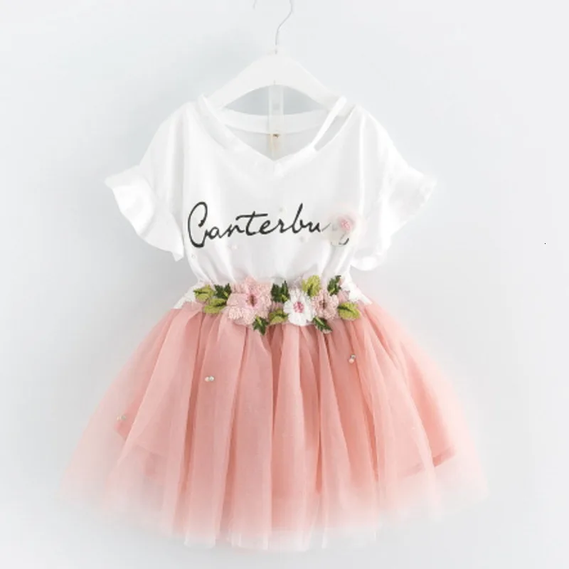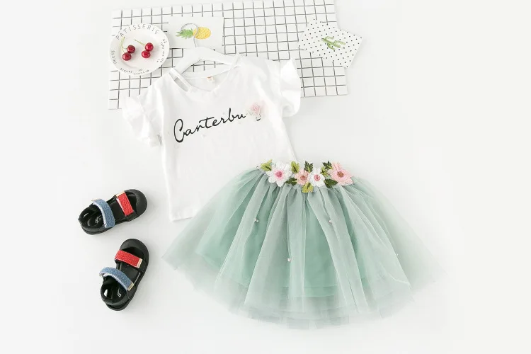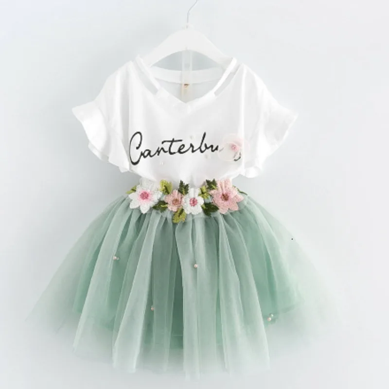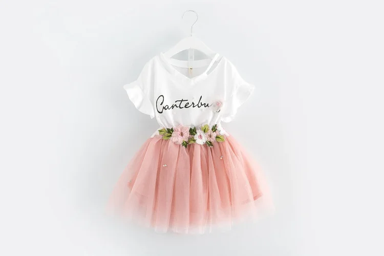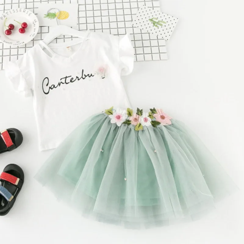 Комплект одежды с цветочным рисунком для девочек; комплект одежды для детей футболка с короткими рукавами и шорты комплект из 2 предметов; пышная юбка принцессы