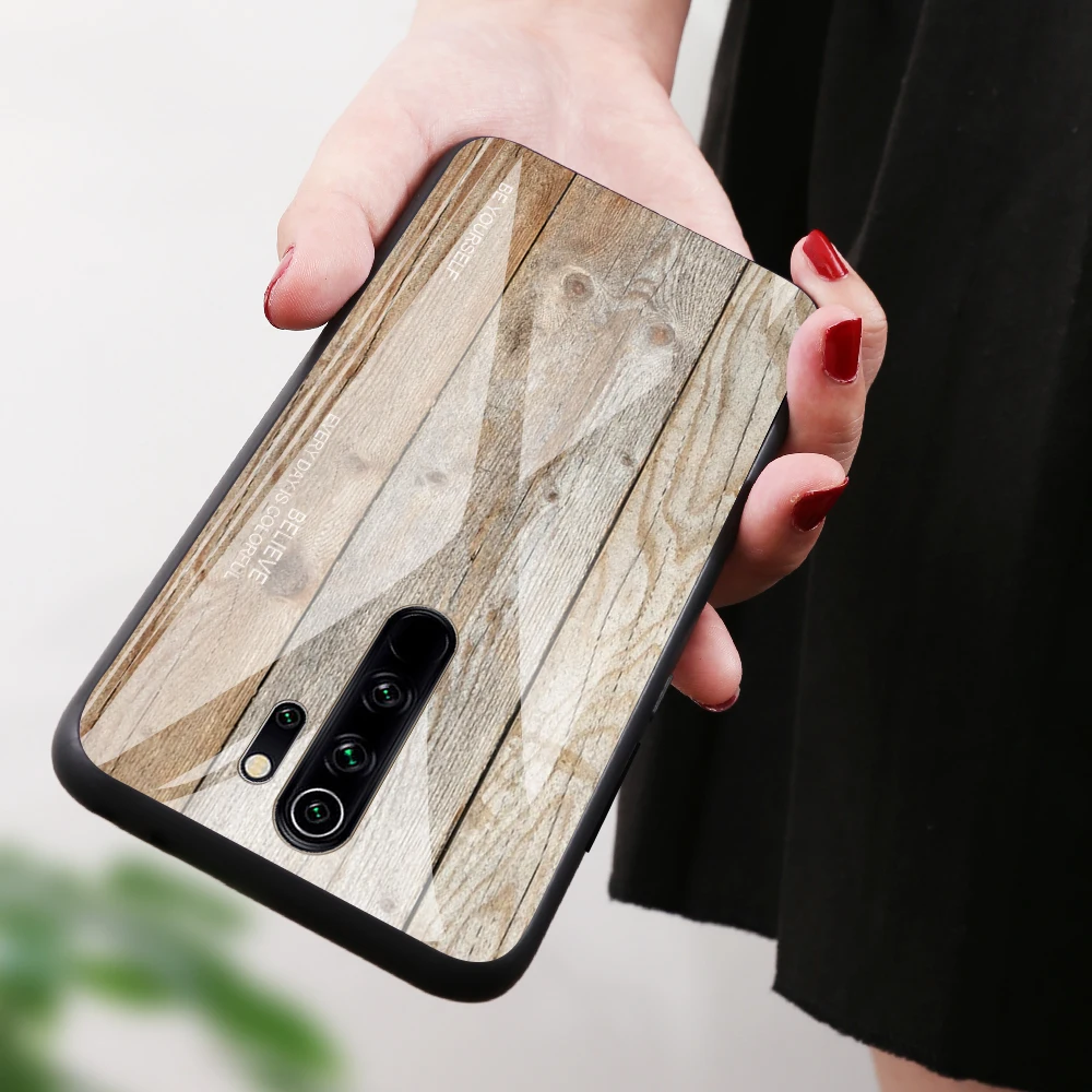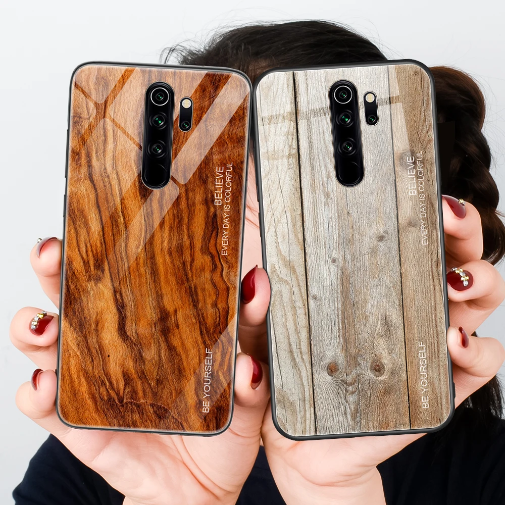Деревянный чехол из закаленного стекла для Xiaomi Redmi Note 8 Pro