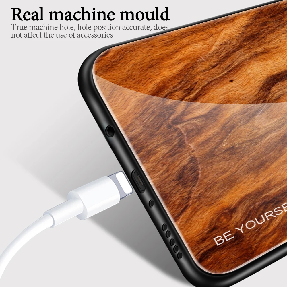 Чехол из закаленного стекла с текстурой древесины для телефона IPho...