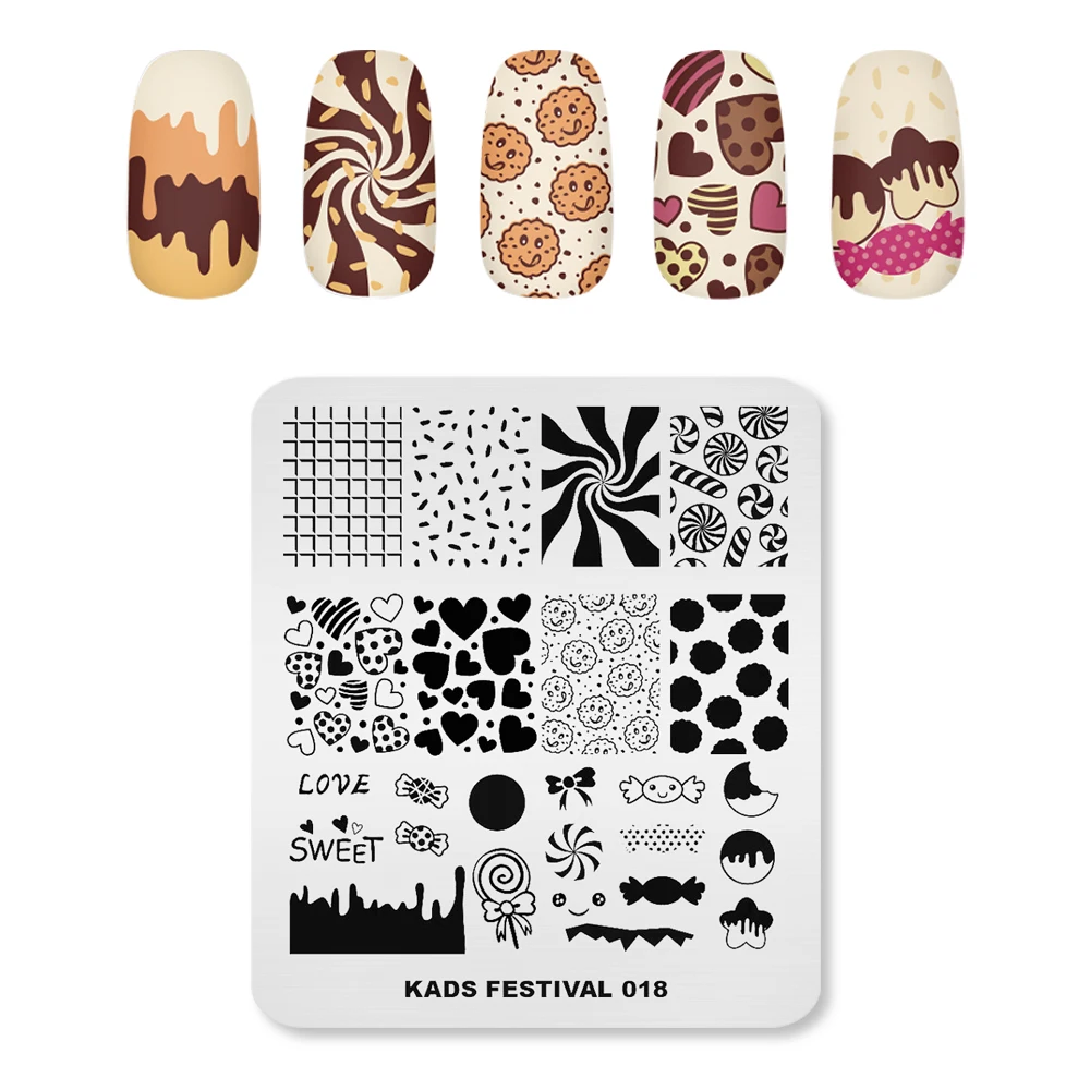 Пластины для стемпинга для дизайна ногтей с изображением сердца и конфет прямоугольный трафарет для дизайна ногтей шаблон для штампов День Святого Валентина пластина для печати ногтей инструменты