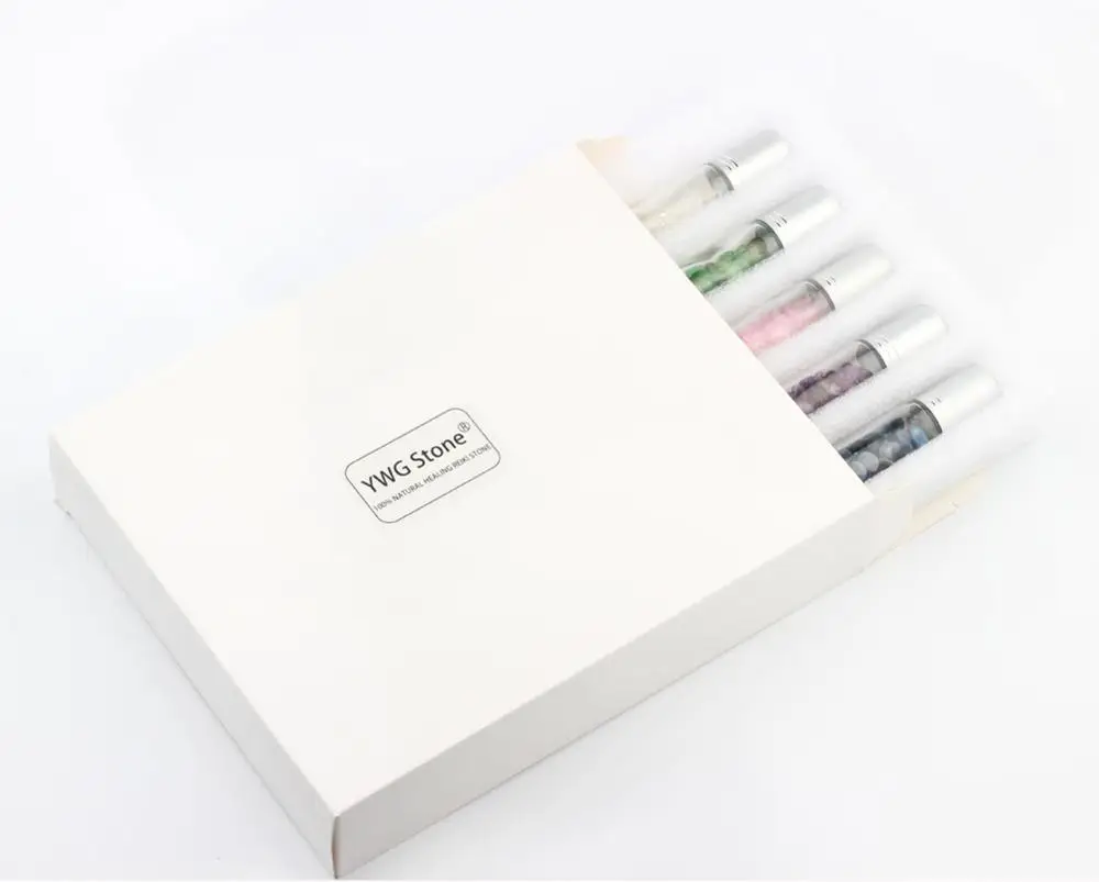 1. Каждый драгоценный камень роликовые шарики соответствует соответствующие мини кристалл каменные чипсы, которые в бутылках. Эти хрустальные чипсы стерилизуются в кипящей воде, а затем высушиваются ветром. Пожалуйста, обратите внимание, что натуральные камни имеют разницу в цвете, их нельзя избежать.