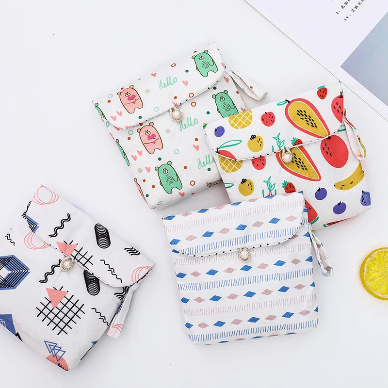 1 шт. гигиеническая сумка, милая мультяшная хлопковая ткань, сумка для хранения салфеток, большая емкость, женская гигиеническая сумка для хранения, органайзер для кредитных карт
