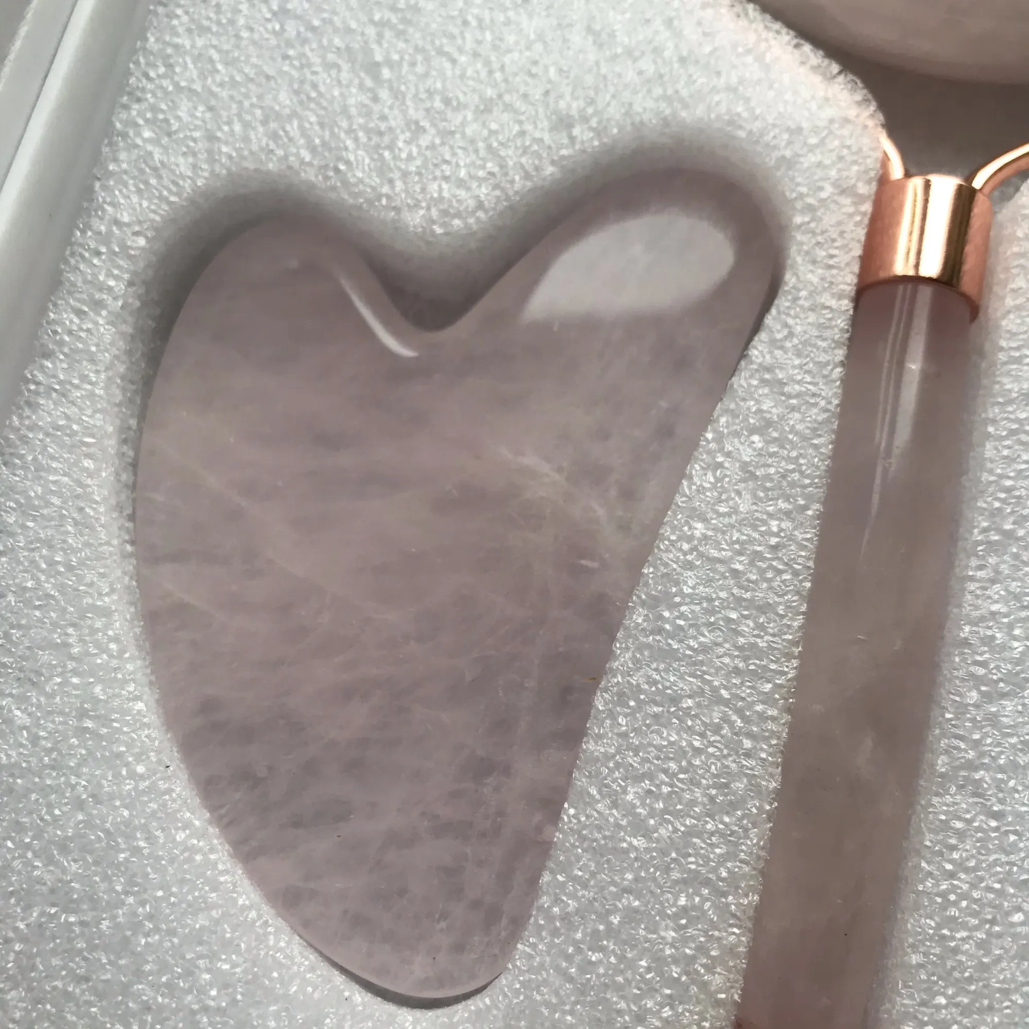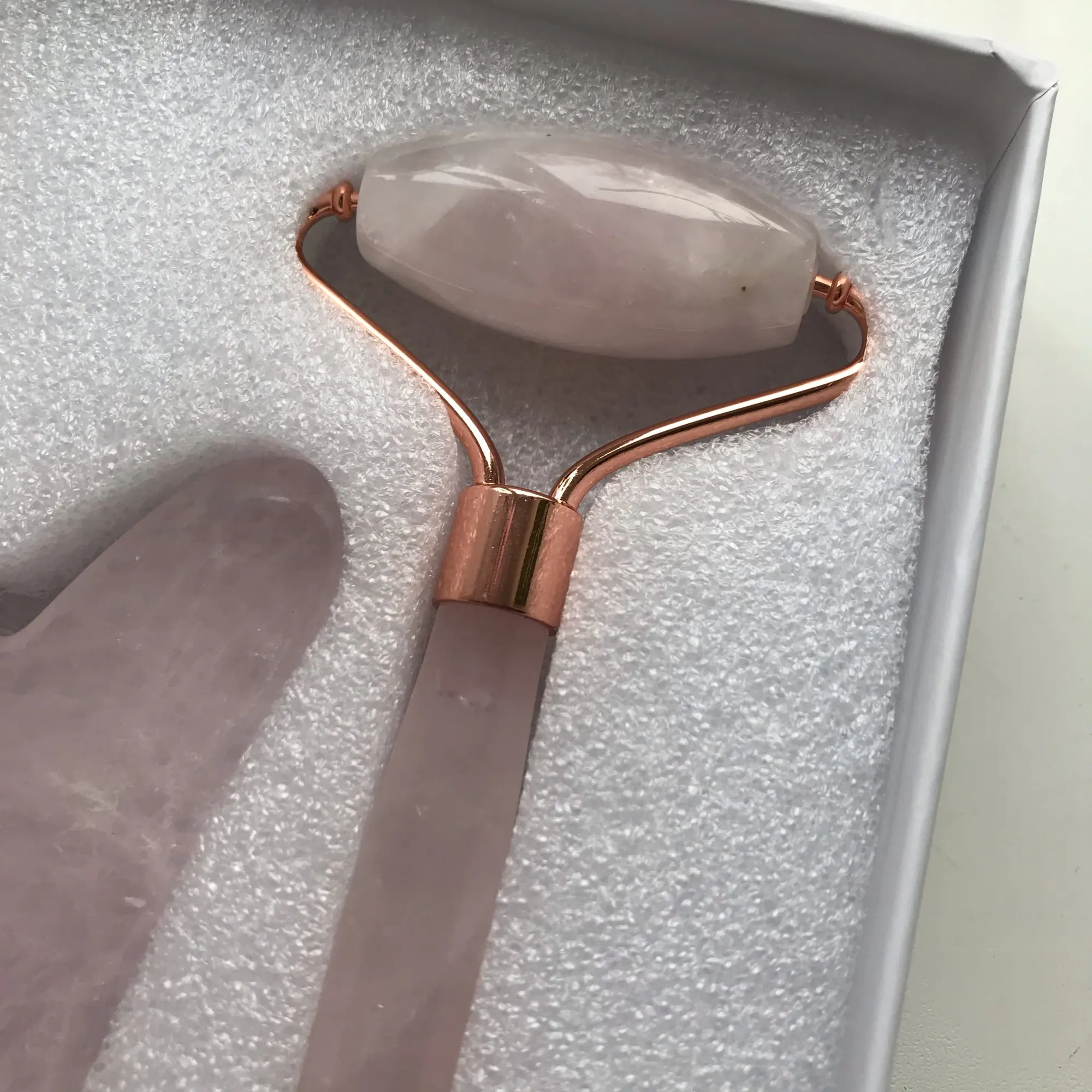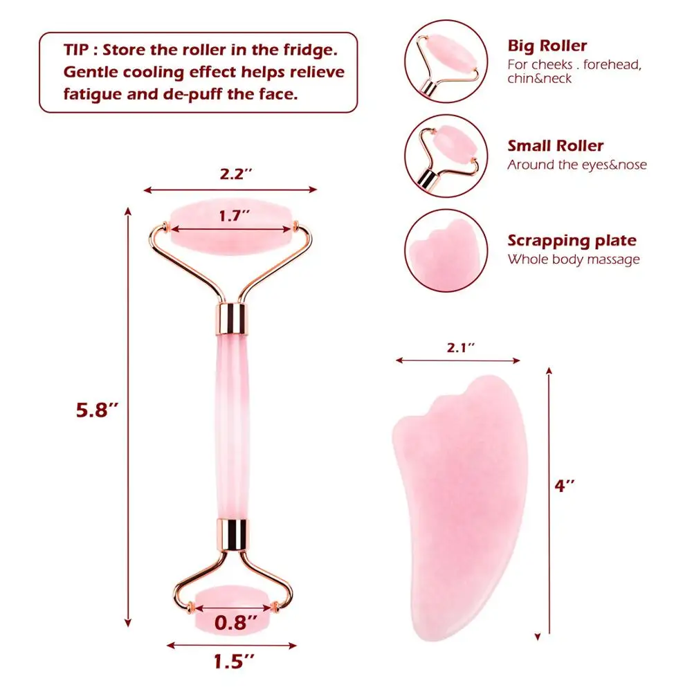 Роликовый камень из натурального розового кварца, роликовый лицевой нефрит, скребок для гуаша, массаж лица, лифтинга, кожи, тела, массажер, косметический уход, инструмент