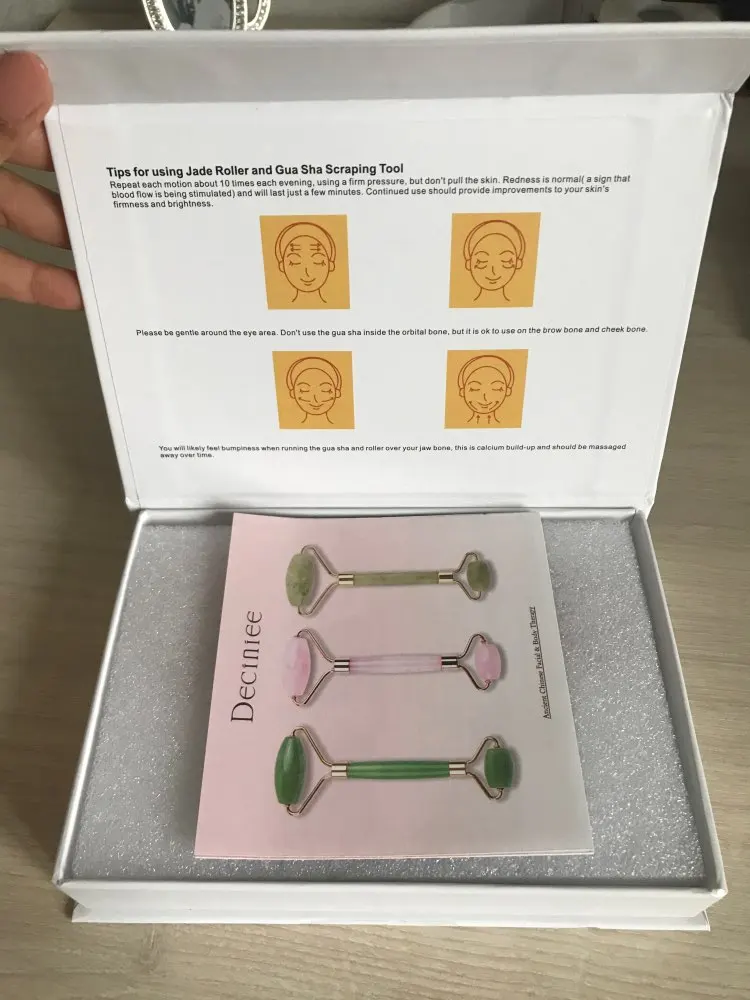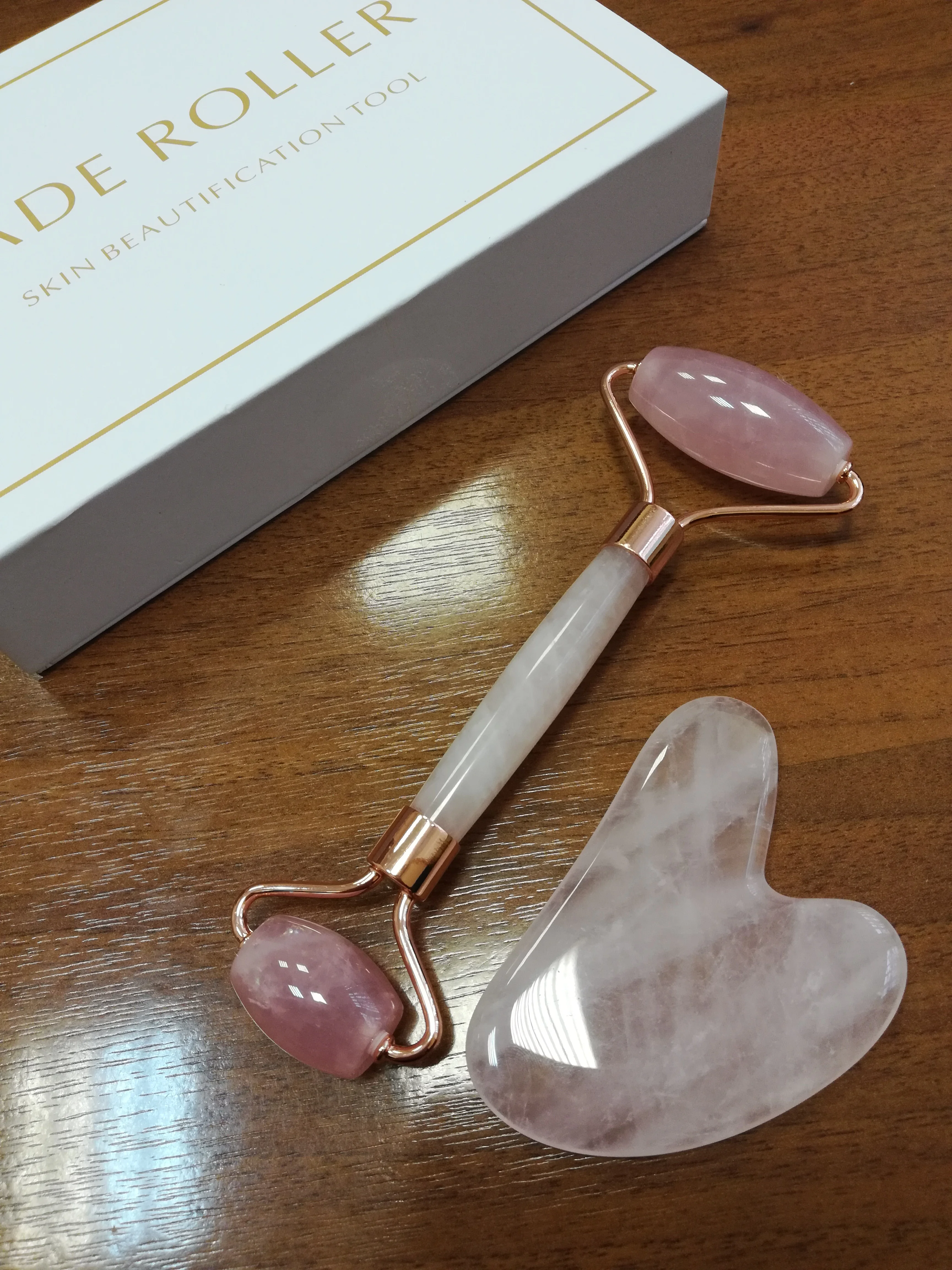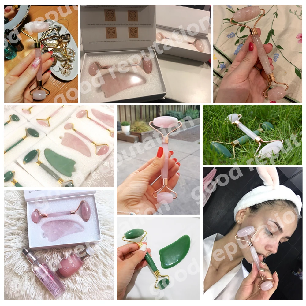 Роликовый камень из натурального розового кварца, роликовый лицевой нефрит, скребок для гуаша, массаж лица, лифтинга, кожи, тела, массажер, косметический уход, инструмент