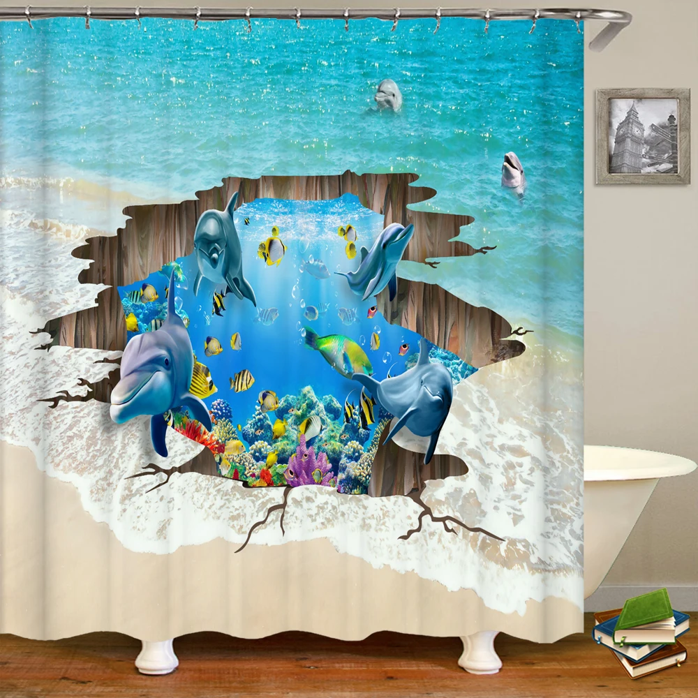 Занавеска для душа с изображением океана, Дельфина, морского мира, животных, водонепроницаемая ткань, занавеска для душа для ванной комнаты, Симпатичные рыбы, большой размер 240X18 0, экран