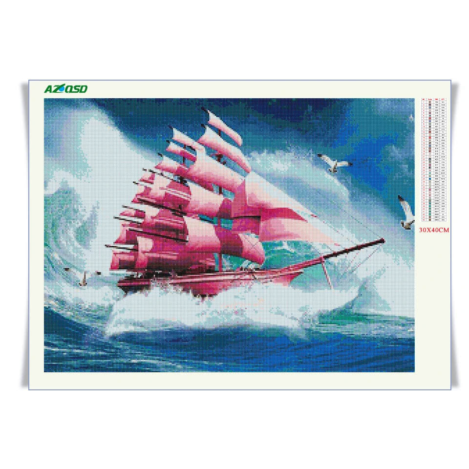 AZQSD пейзаж Алмазная мозаика Вышивка крестом картина Стразы 5D DIY алмазная живопись Корабль Алмазная Вышивка Полный дисплей