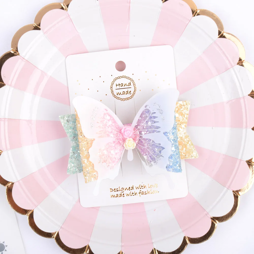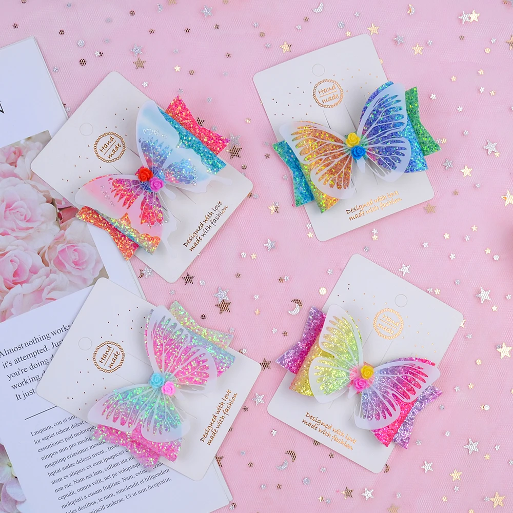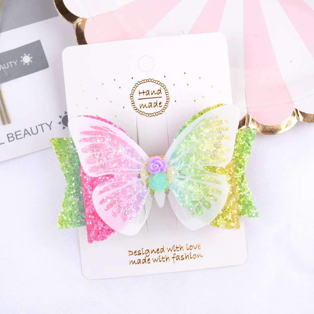 1 шт. 3,5 дюйма блестящий цветок с бантом из мультфильма с зажимом Новинка сделано для детей девочек шпилька для волос Украшенные Детские аксессуары для волос 091