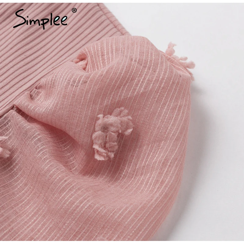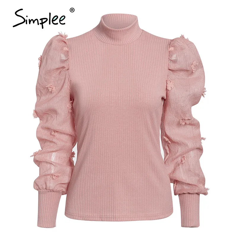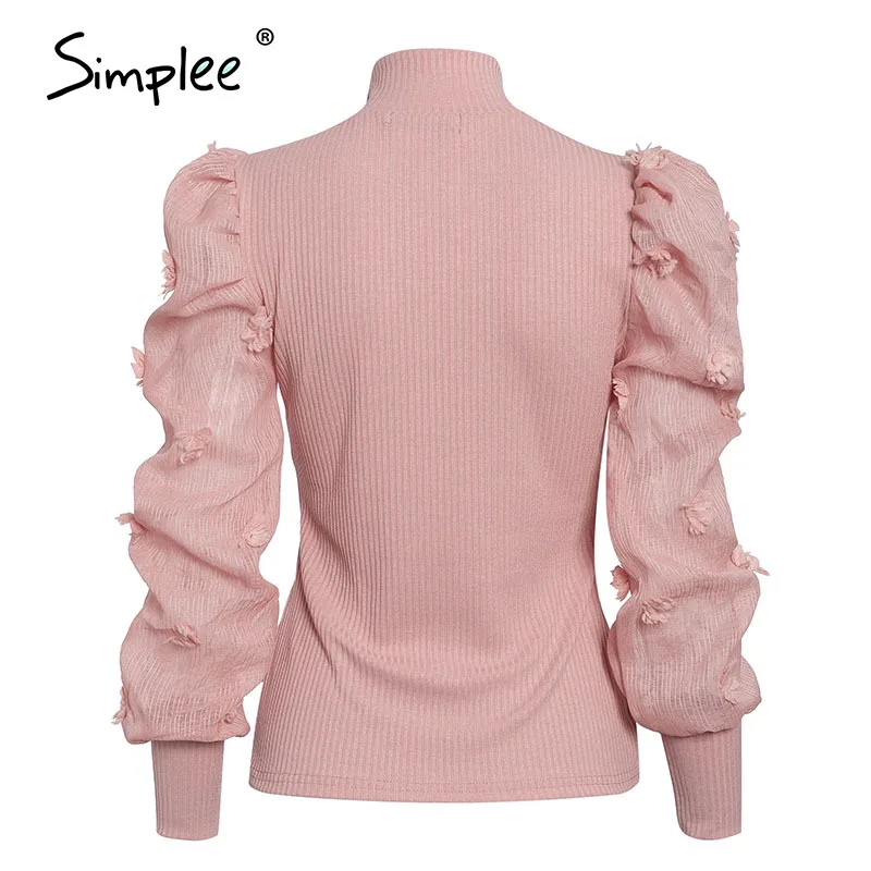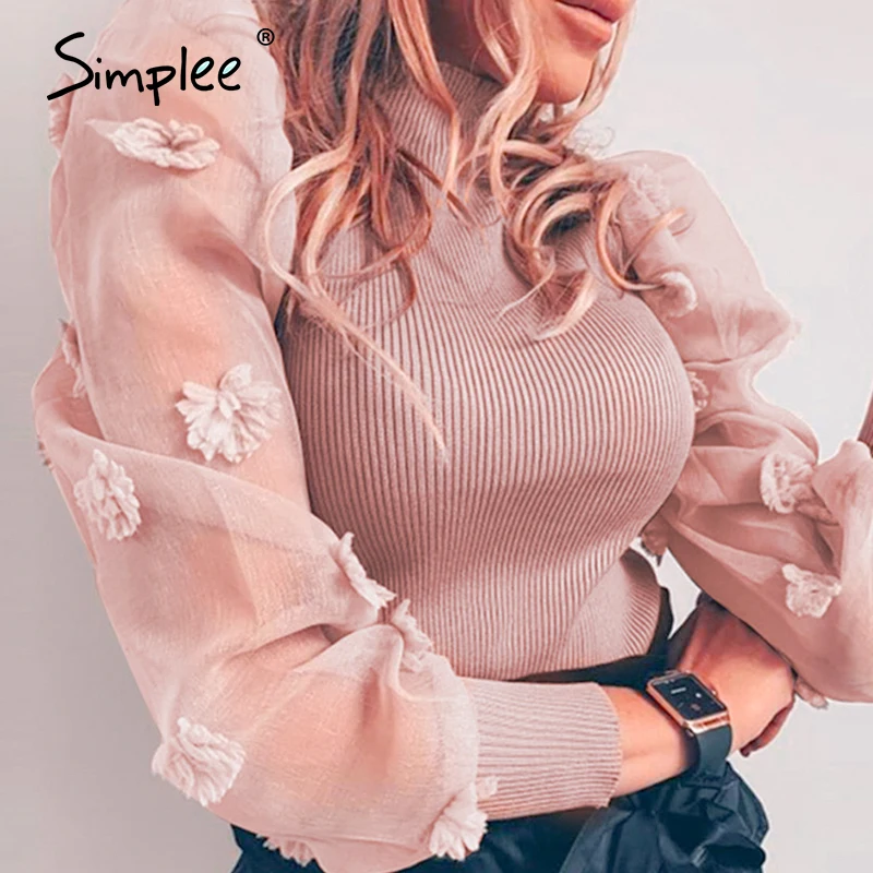 Simplee винтажные розовые вязаные цветочные женские рубашки пуловер-черепаха рубашка в рубчик с буфами размера плюс повседневные топы элегантный цветочный свитер Топ