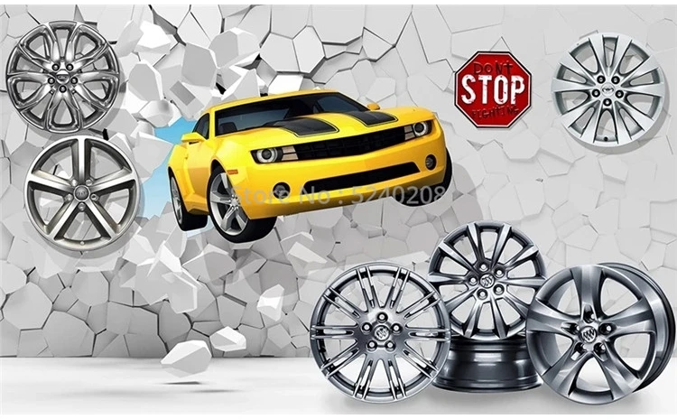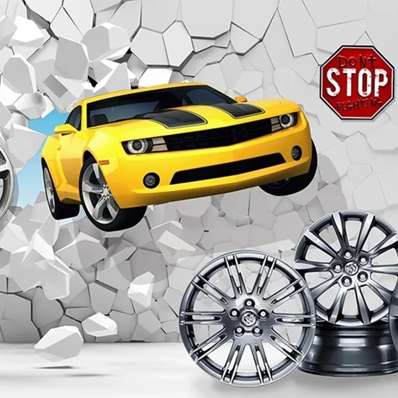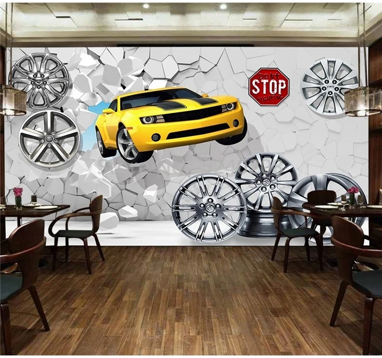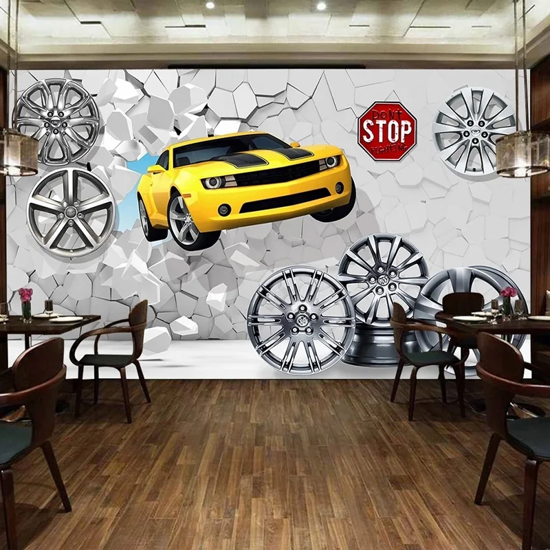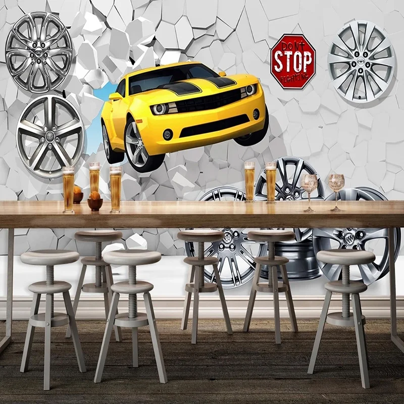 3D-обои на заказ, современные креативные настенные фрески с разбитыми автомобилями, баром, кофейней, авторемонтом, фоновые украшения для стен, 3D наклейки