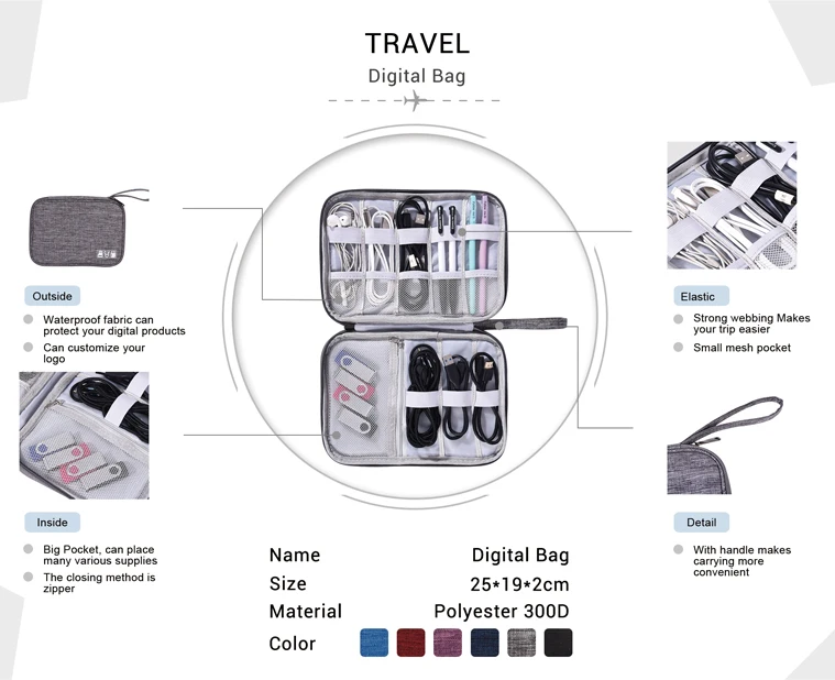 Большая вместимость, храните различные электронные принадлежности, такие как зарядное устройство, провод, адаптер, вилка, наушники, внешний жесткий диск, мышь и другие электронные приборы, необходимые в поездке.Многослойный дизайн, водонепроницаемая ткань, изысканная швейная нить, каждая деталь тщательно продумана