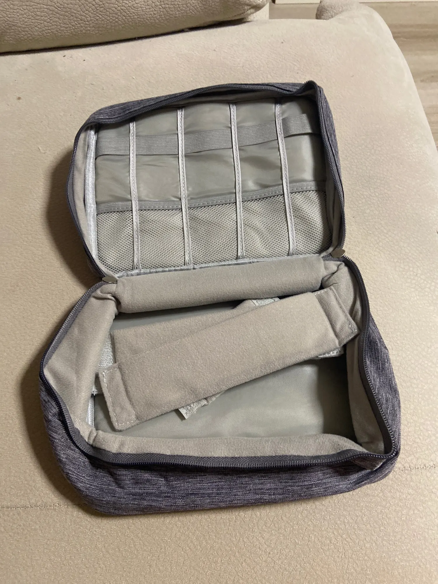 Этот чехол Фантастический! Есть место для моих зарядных шнуров, проводных наушников, airpods, дополнительных карт micro sd и многого другого. Другая половина чехла проложена и подходит для мобильного телефона или планшета меньшего размера. Идеально подходит для путешествий. Мне нравится! Я доволен своей покупкой и рекомендую этого продавца.