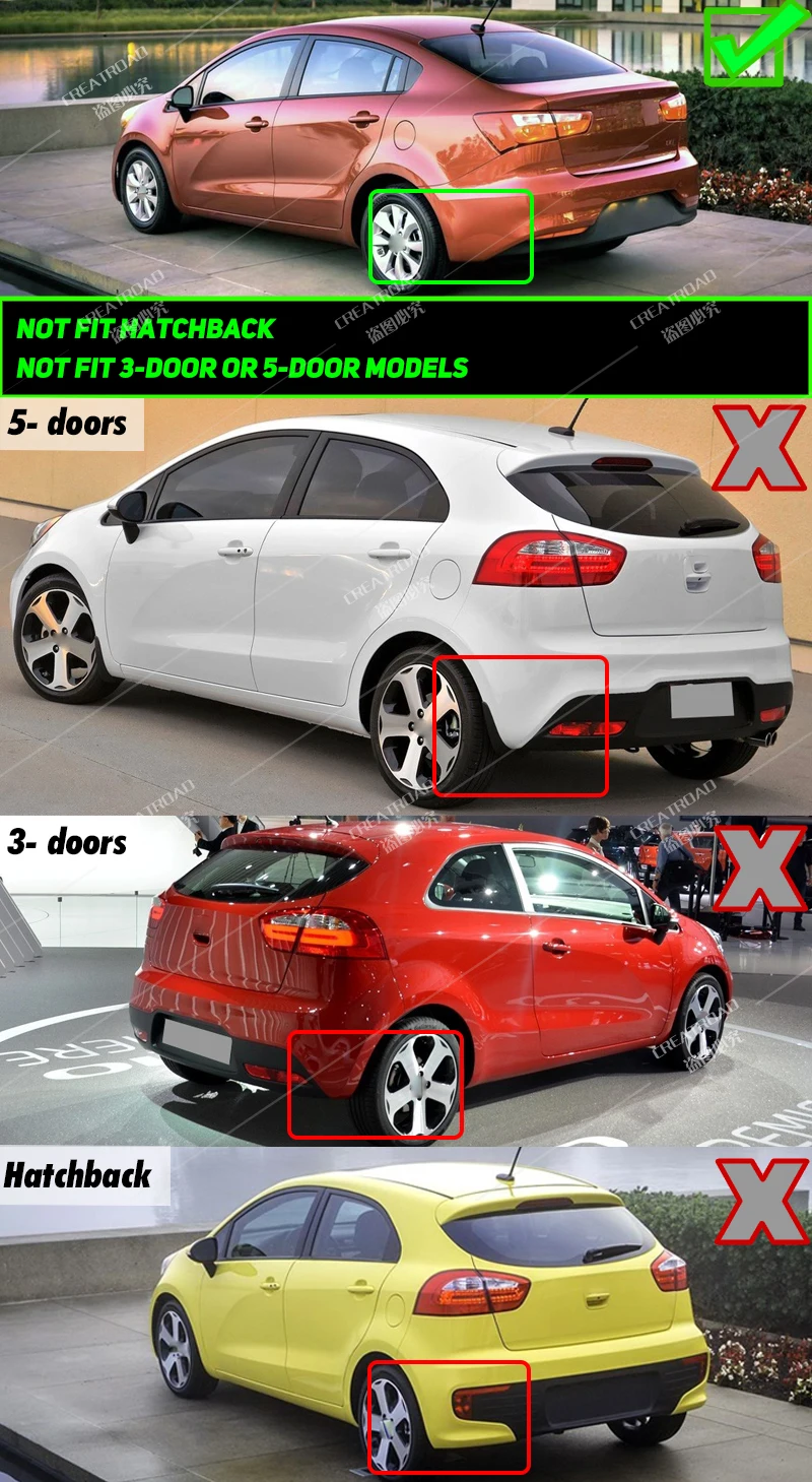 Применимость: Для Kia Rio 2012-2018 (UB), набор из 4 Двери Седан толькоНе подходит для хэтчбекаНе подходит для 3-двери или 5-модели входных дверейНе совместим с комплектом аэродинамики, боковыми юбками, комплектом для тела и т. д.