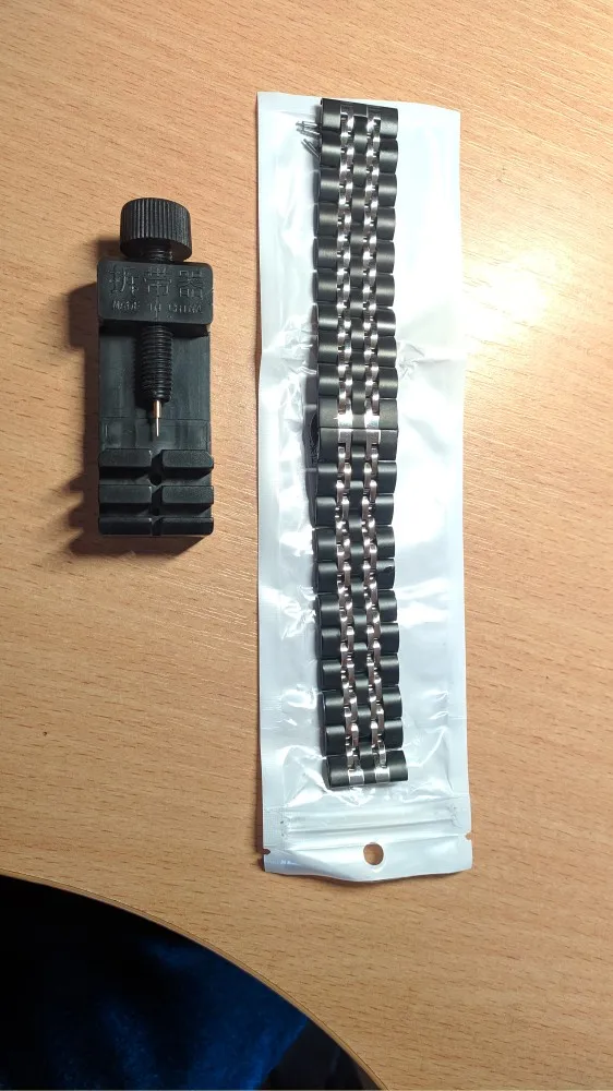 Очень не доволен посылкой. Единственный плюс, это быстрая отправка. Ремешок пришёл уже с отколупавшейся краской, продавец игнорировал все сообщения, очень хлипкий зажим для снятия звеньев, хватает для снятия 1-2 звена, потом можно выкидывать. Если не хотите разочароваться от товара, лучше другой покупайте