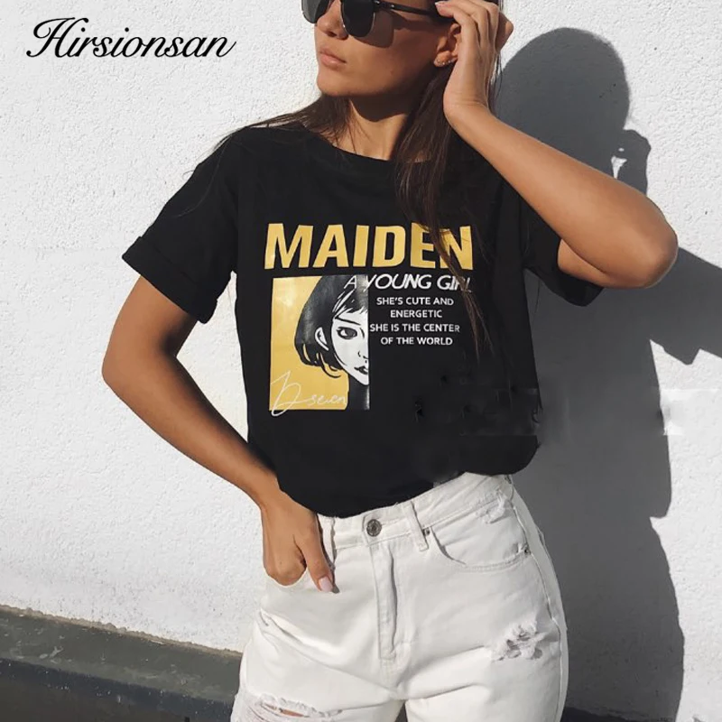 Футболка Hirsionsan женская оверсайз, 100% хлопок, мягкая одежда, крутой Повседневный джемпер с надписью Ins для девушек, шикарные футболки в стиле Харадзюку, 2020