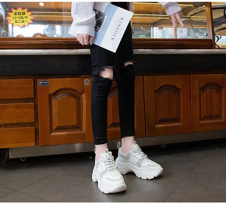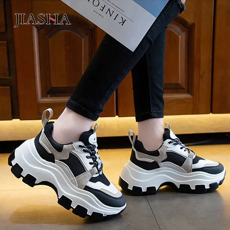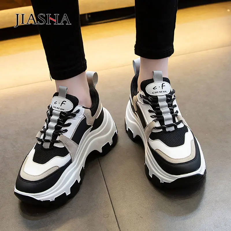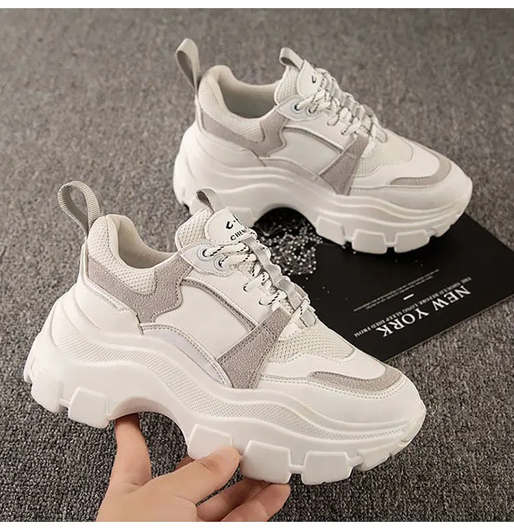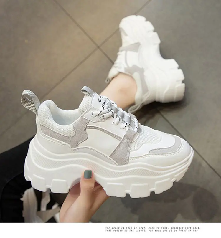 Кроссовки женские на шнуровке, повседневная Нескользящая спортивная обувь на платформе, круглый носок, белые, весна 2022