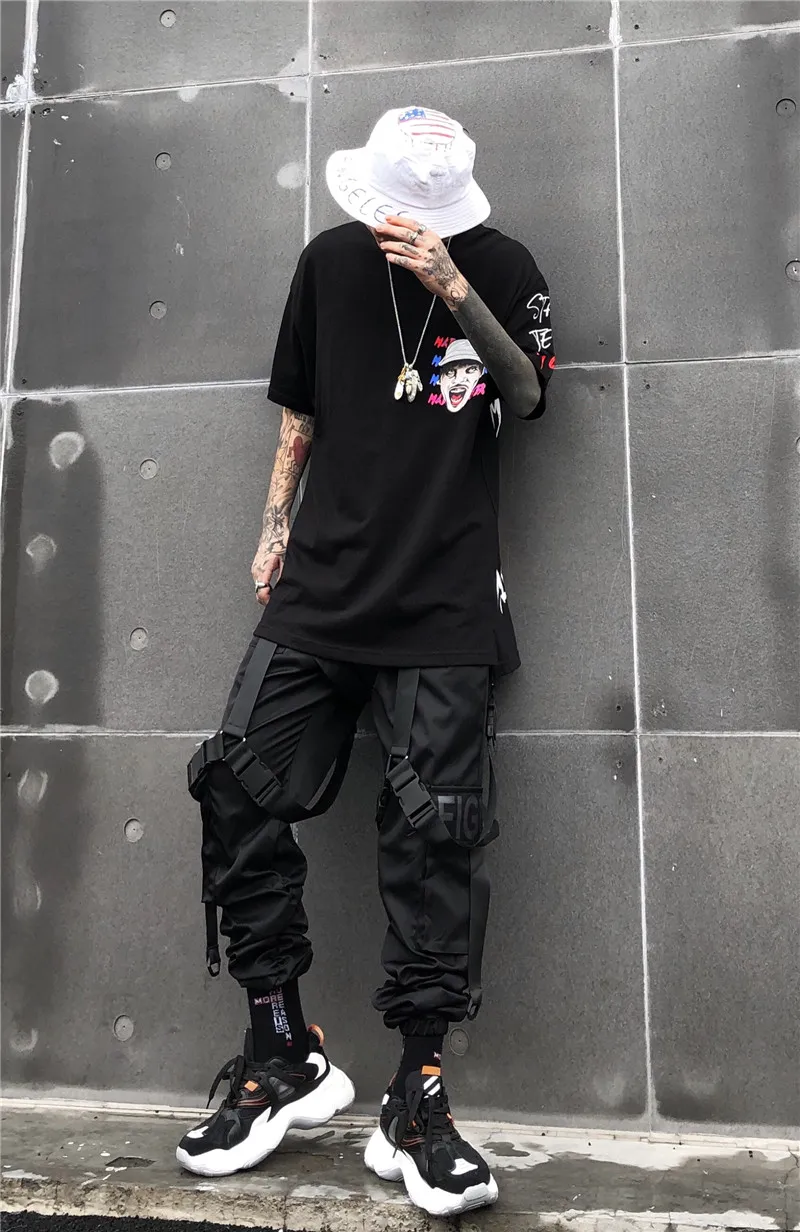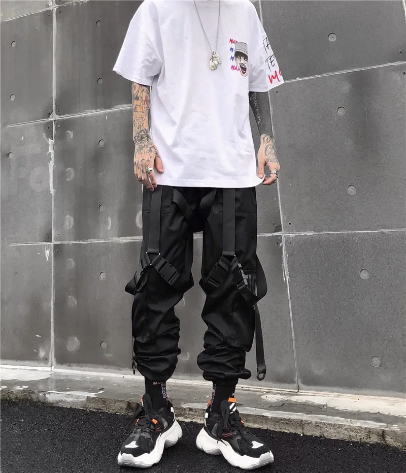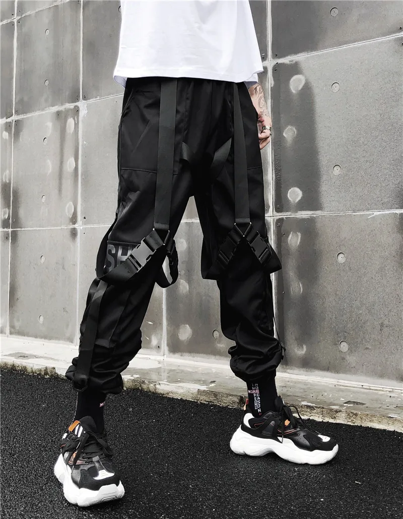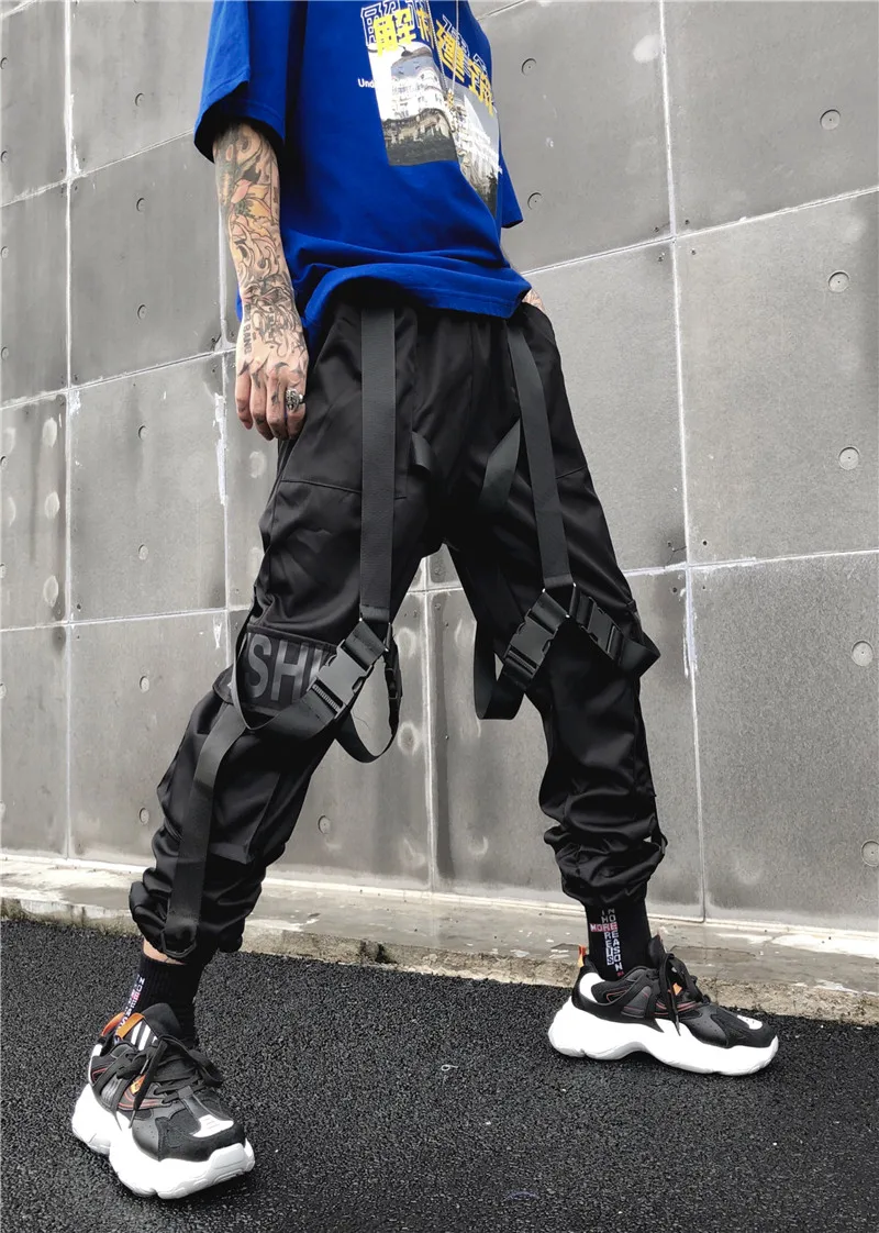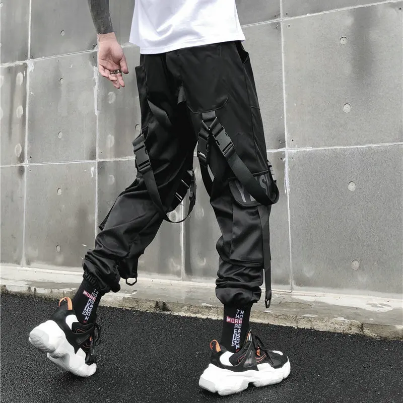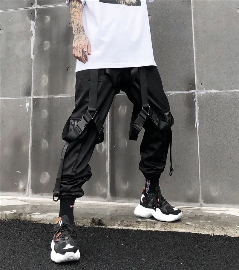 Брюки-карго мужские с карманами, уличная одежда, брюки-султанки брюки Харадзюку, джоггеры с лентой, черные спортивные штаны, 2020