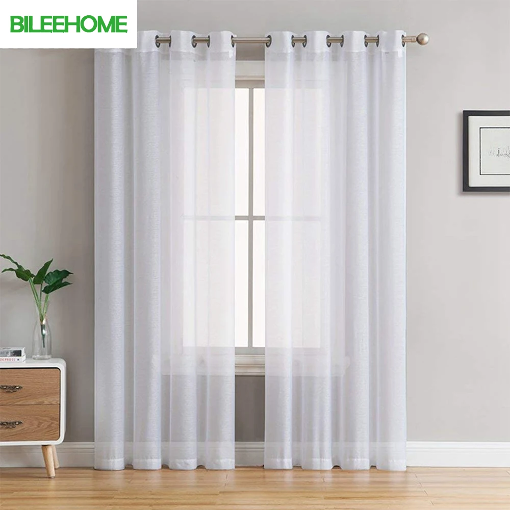 Однотонные белые прозрачные Занавески BILEEHOME для гостиной для двери в спальню, на кухню, современные тюлевые занавески из вуали для окон