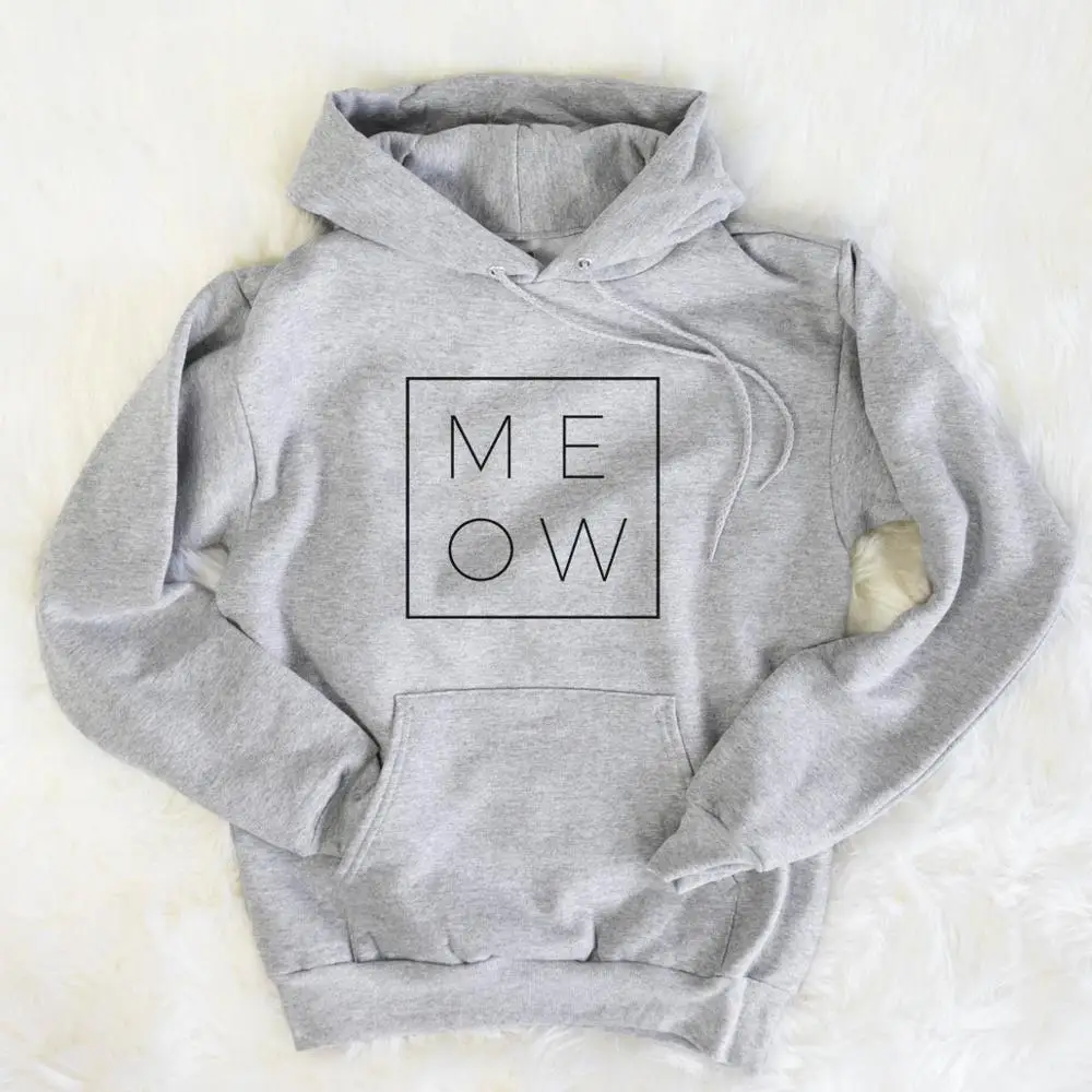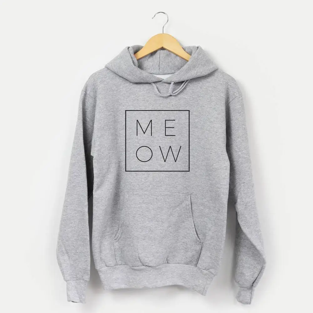 Толстовка с капюшоном MEOW Boxed из чистого хлопка, повседневная Молодежная хипстерская одежда для влюбленных кошек, пуловер в хипстерском стиле для вечевечерние, милые топы