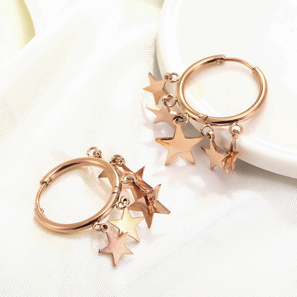 Тип товара: Женские модные ювелирные изделия; Серьги-кольцаРазмер серьги:3,3 см/1.29inФорма Серьги:ЗвездыМатериал серьги:100%Нержавеющая стальЦвета серег:Серебро/розовое золотоСпециальный дизайн:Кольцо с кисточкой серьги