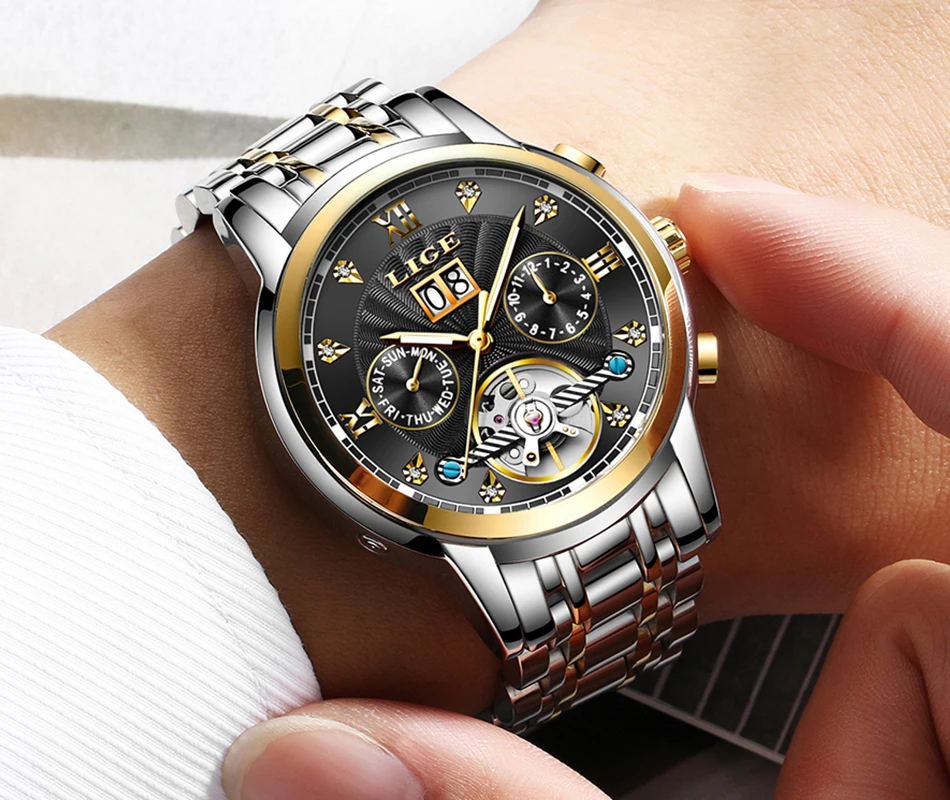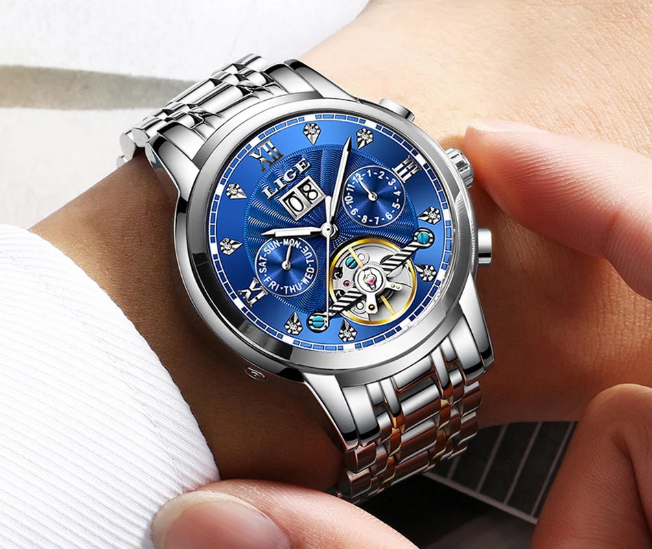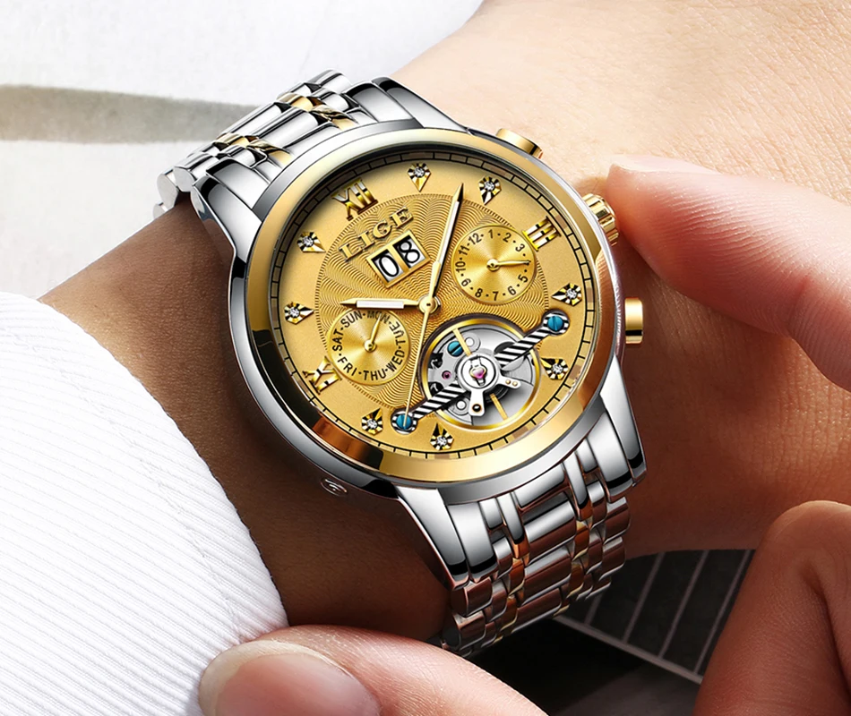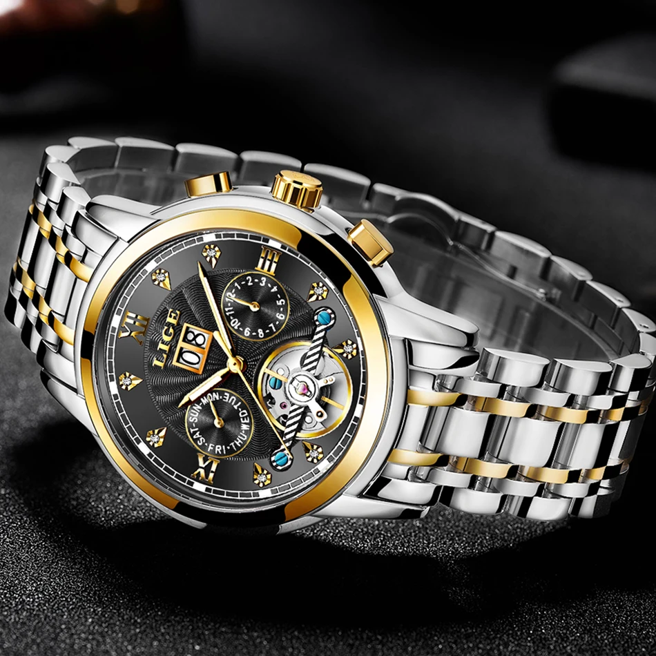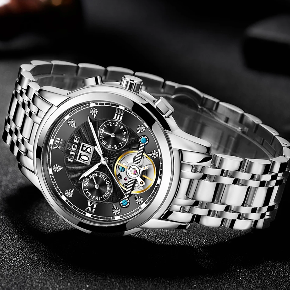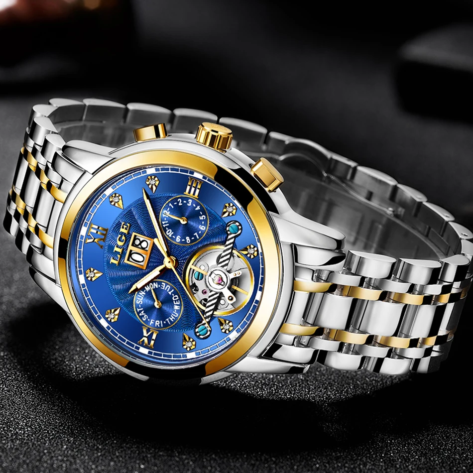 Часы наручные LIGE Мужские механические, брендовые Роскошные спорти...
