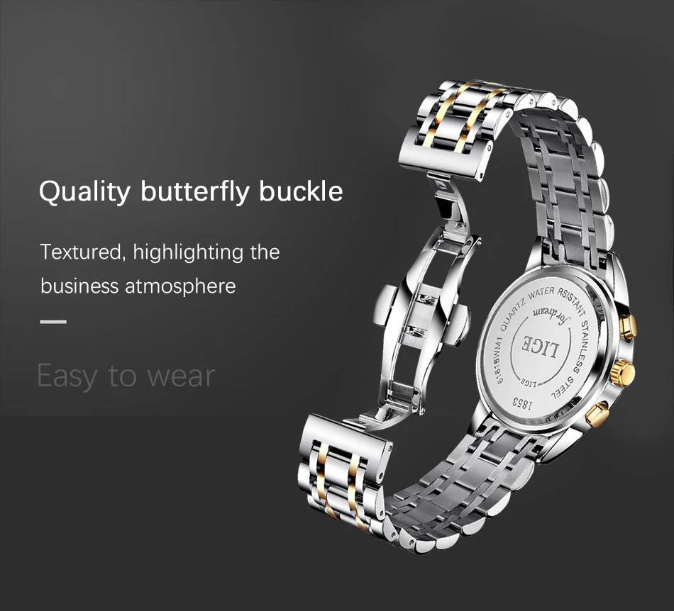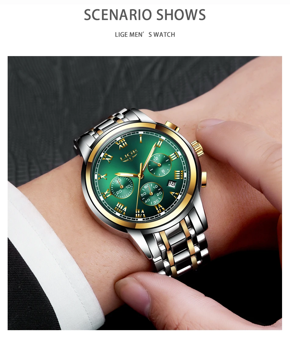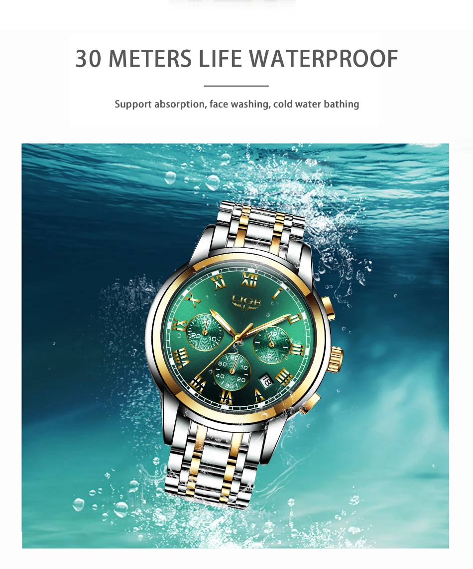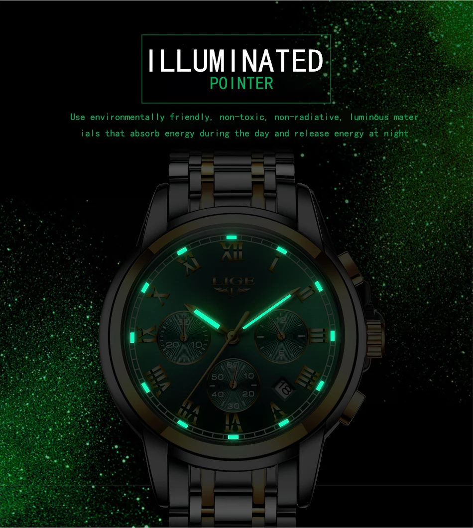 Зеленые деловые мужские часы LIGE, брендовые Роскошные водонепрониц...