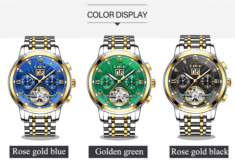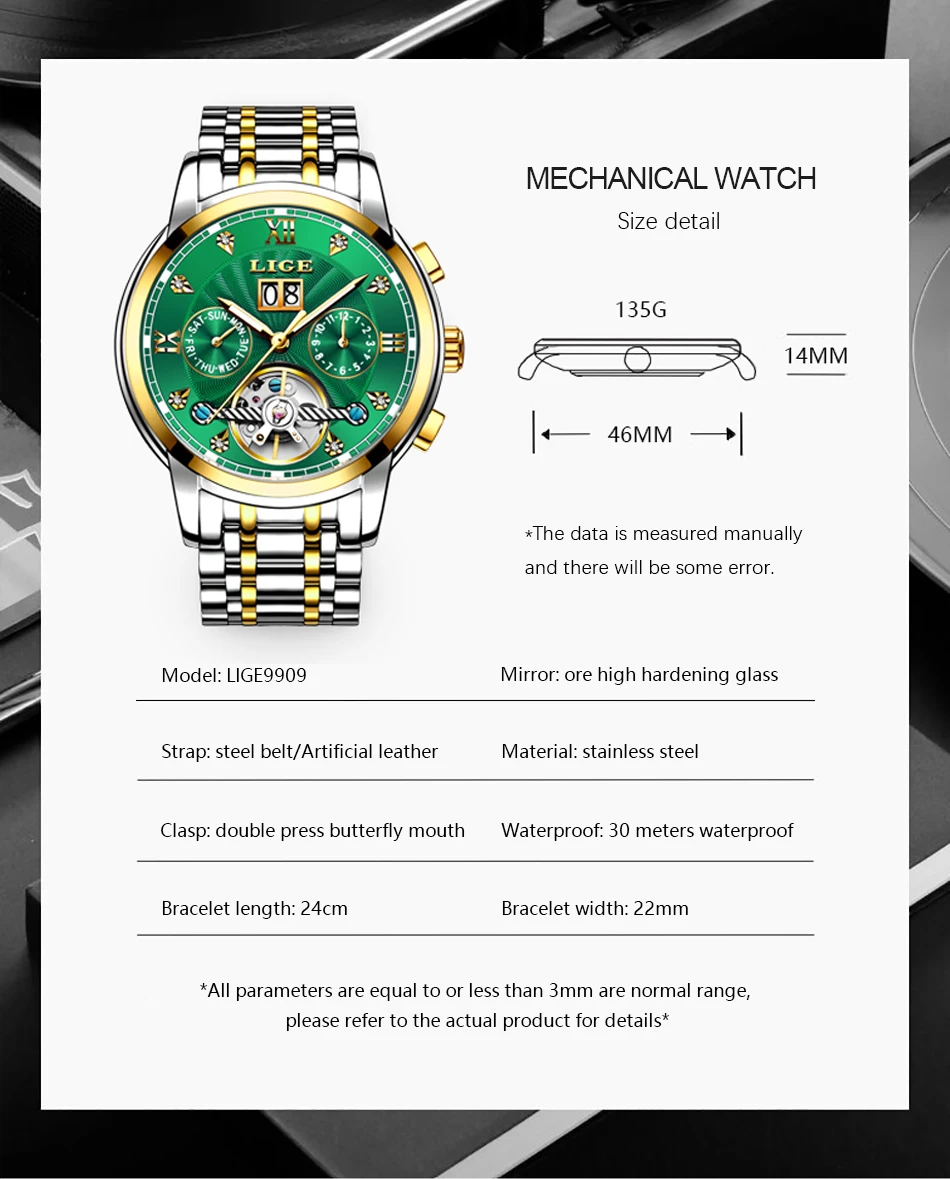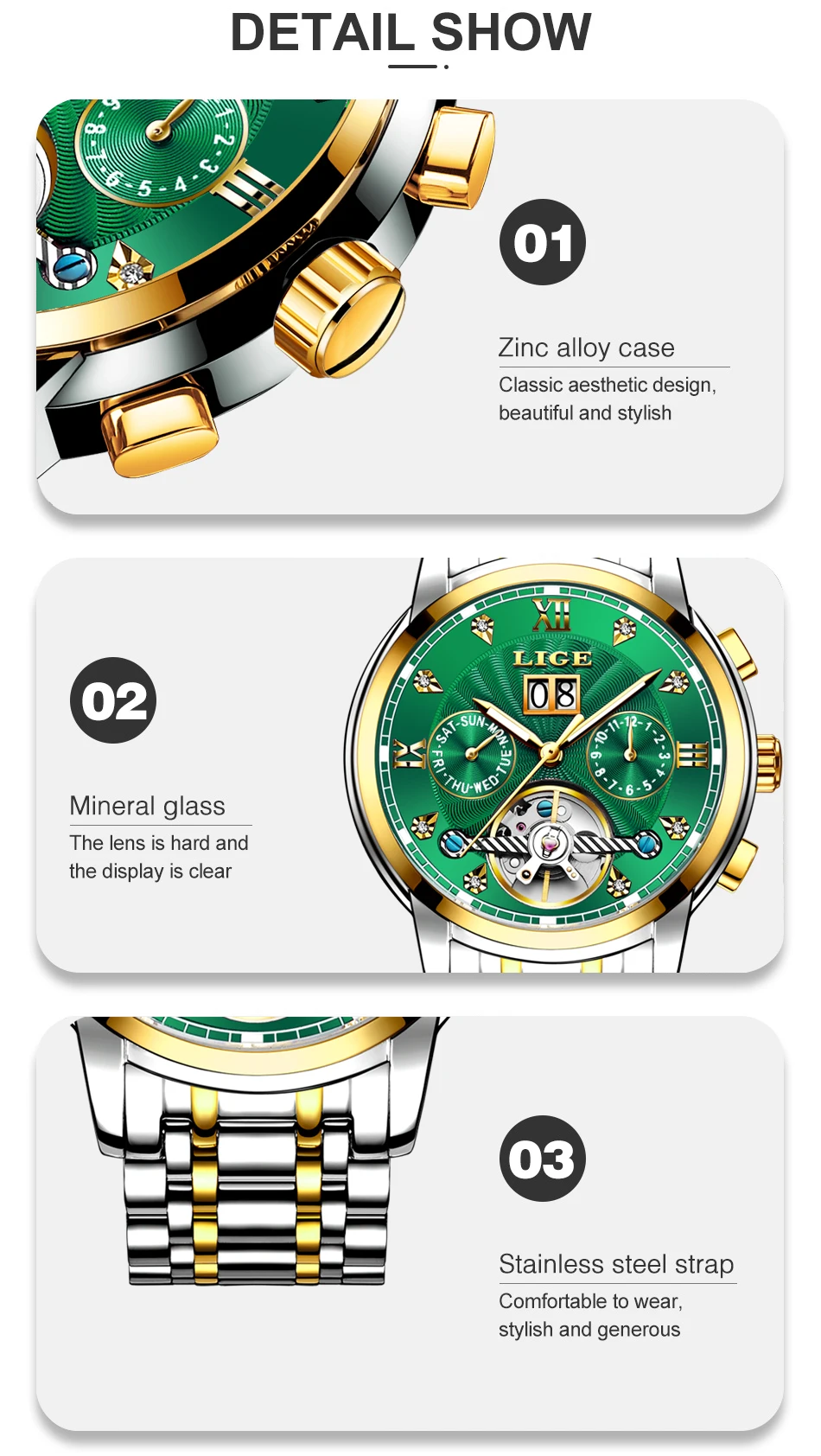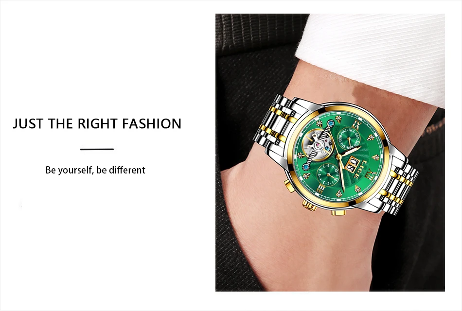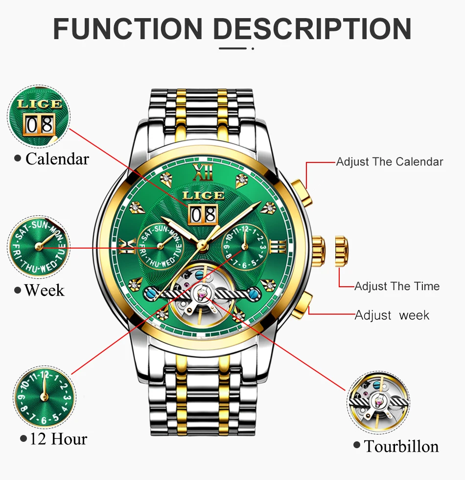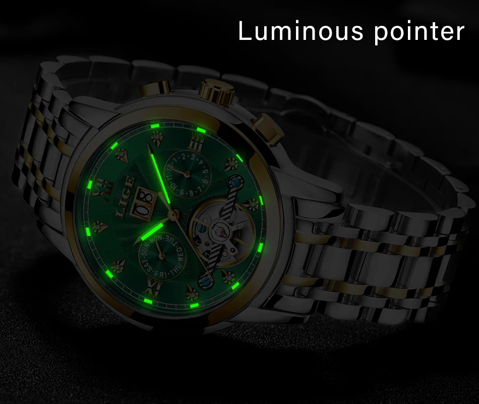 Часы LIGE Мужские механические зеленые, модные брендовые Роскошные ...