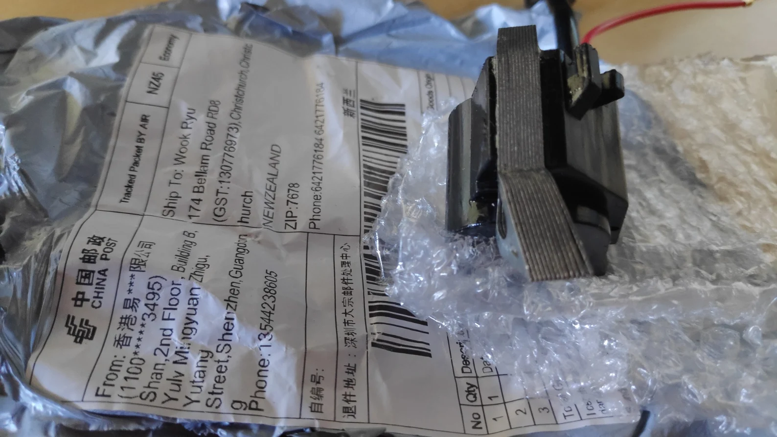 Страна: NZ Доставка: China Post Registered Air Mail 28.11.2021