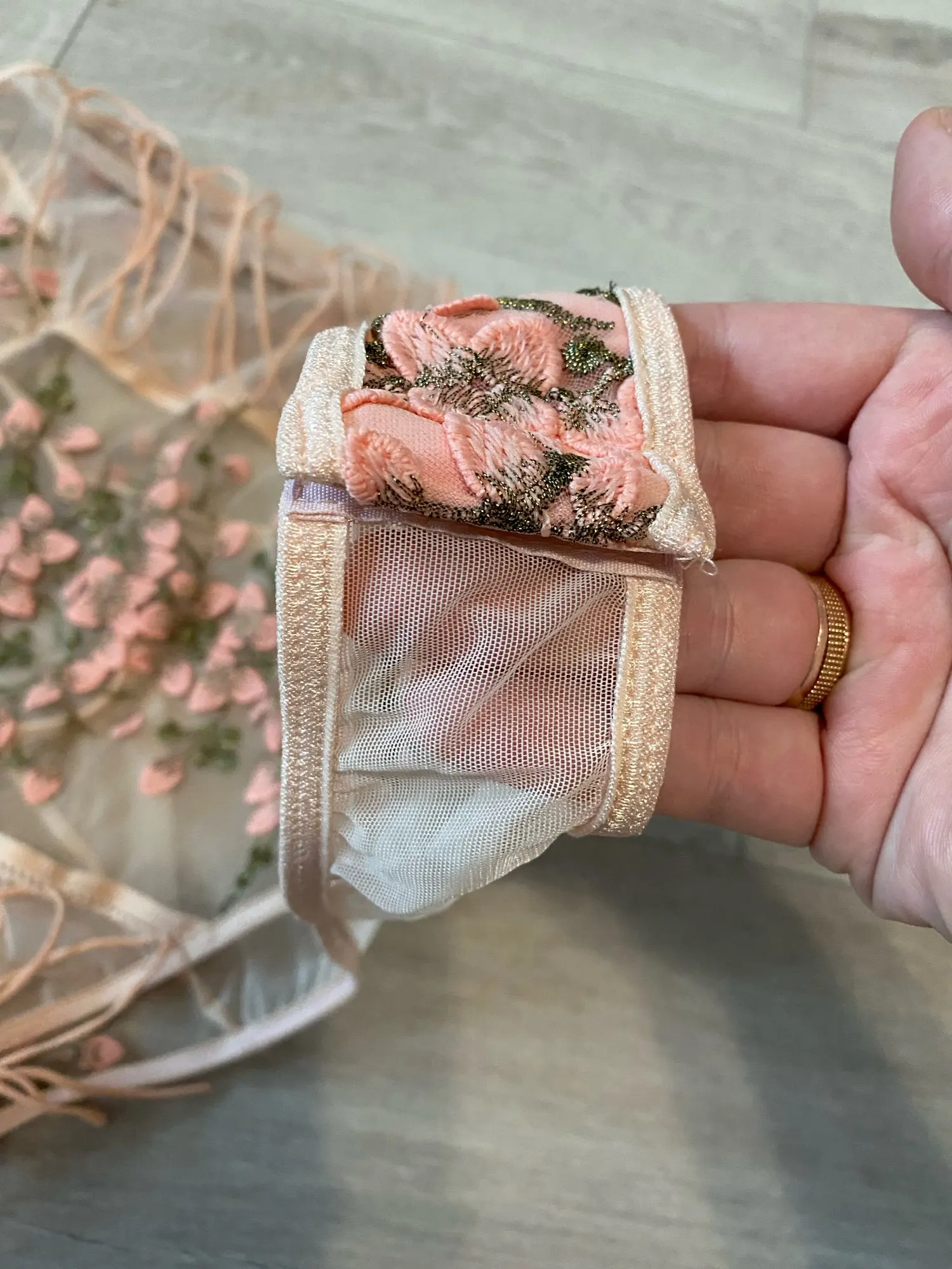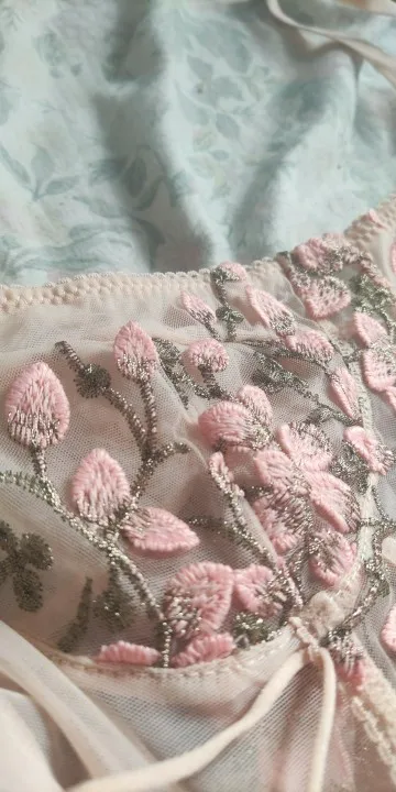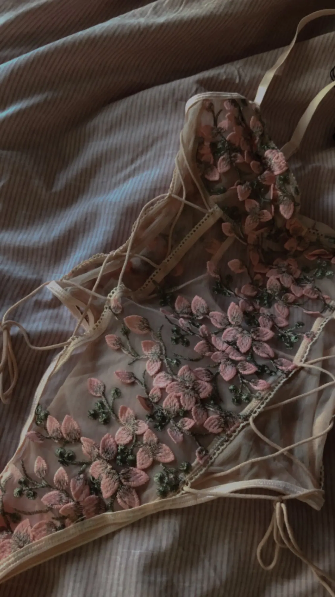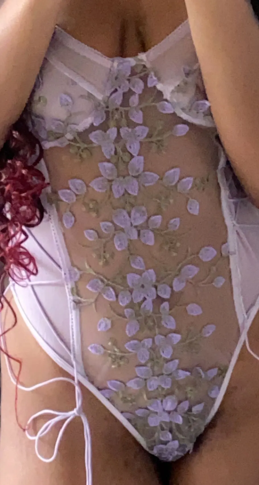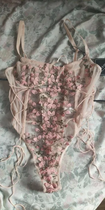 It's so cute omg !!! literally so soft and it stretches ALOT so it should fit if u order a size similar to urs. the flowers are like sewed on not just some design stamped into it. the strings are so cute and I'll be wearing this over a shirt bc I don't need it as lingerie lol!! I'm so happy i got this
