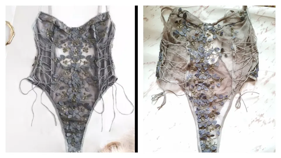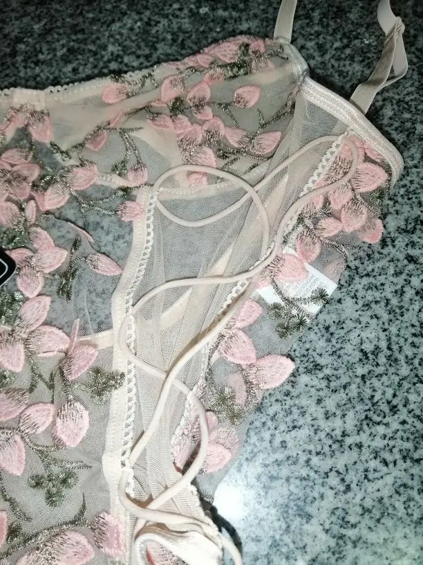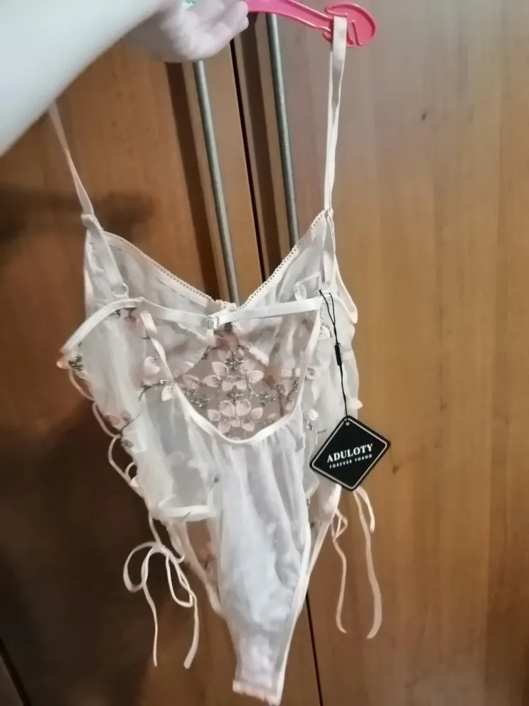 Боди пришло точь в точь как на картинке. Единственный минус это тугие клепки, но снимать за это звезду не буду. Само белье очень приятное на ощупь, не "хрустит" при трении тканей. вышивка качественная, не колет и не отваливается. Лямочки на плечах и спине отлично регулируют размер, на мои параметры 90/65/90 подошло идеально)