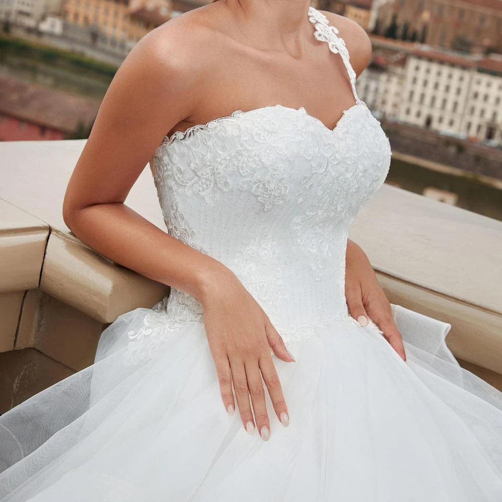 Новинка 2020 года; Бальное платье из тюля с оборками; Свадебные платья на одно плечо; Свадебное платье принцессы; Цвет белый, слоновой кости; Большие размеры