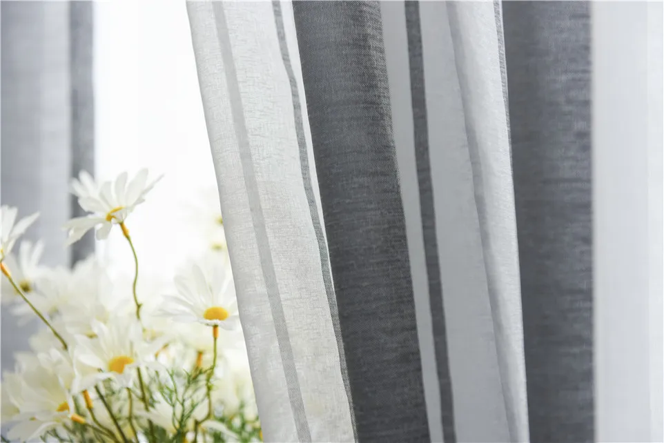 Современные льняные полосатые прозрачные Оконные Занавески для гостиной спальни простые вуали занавески Рождественское украшение тюль занавески